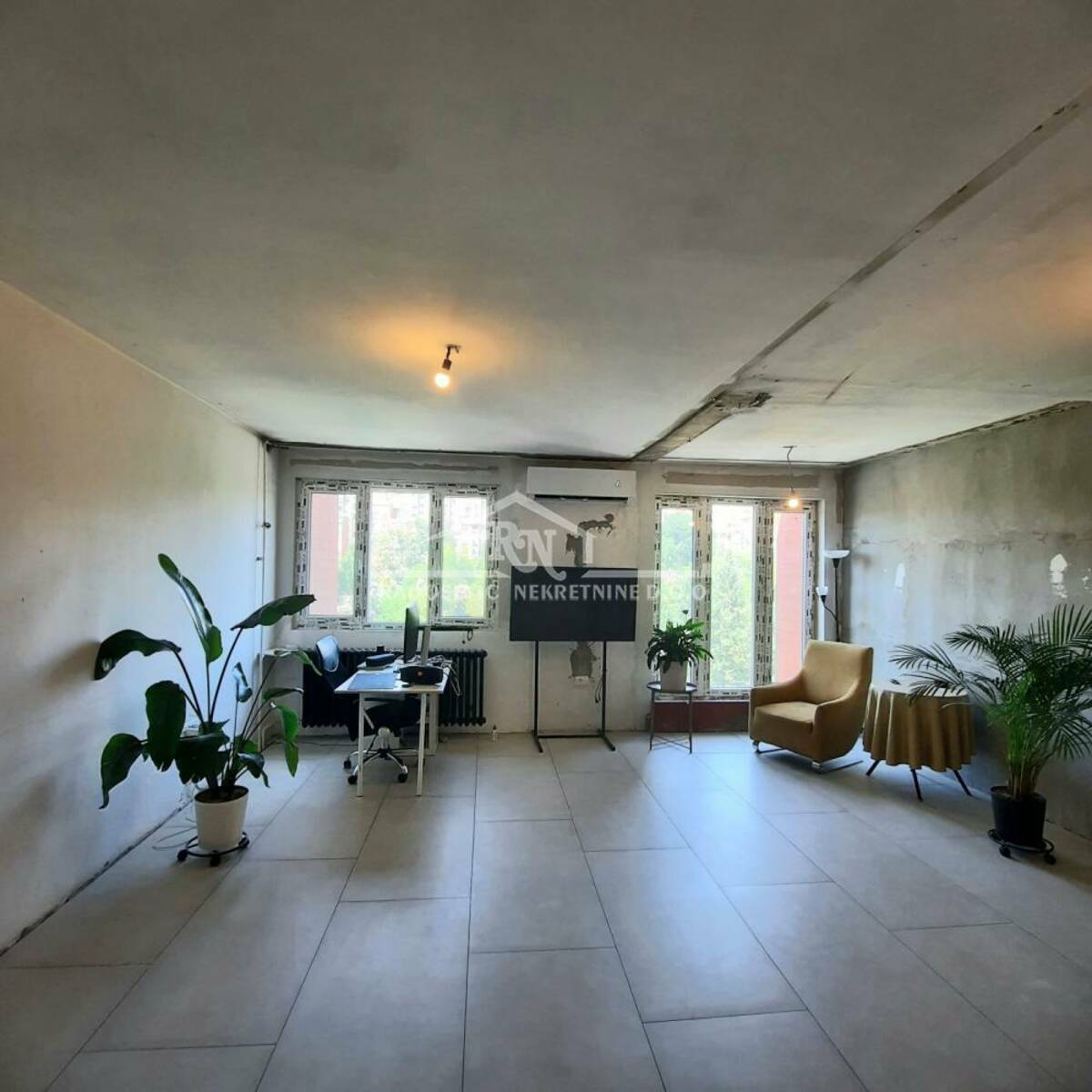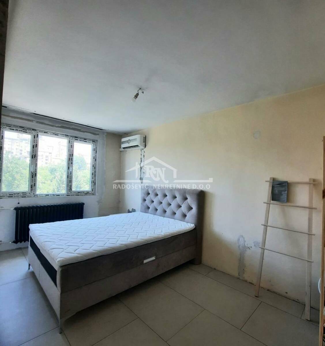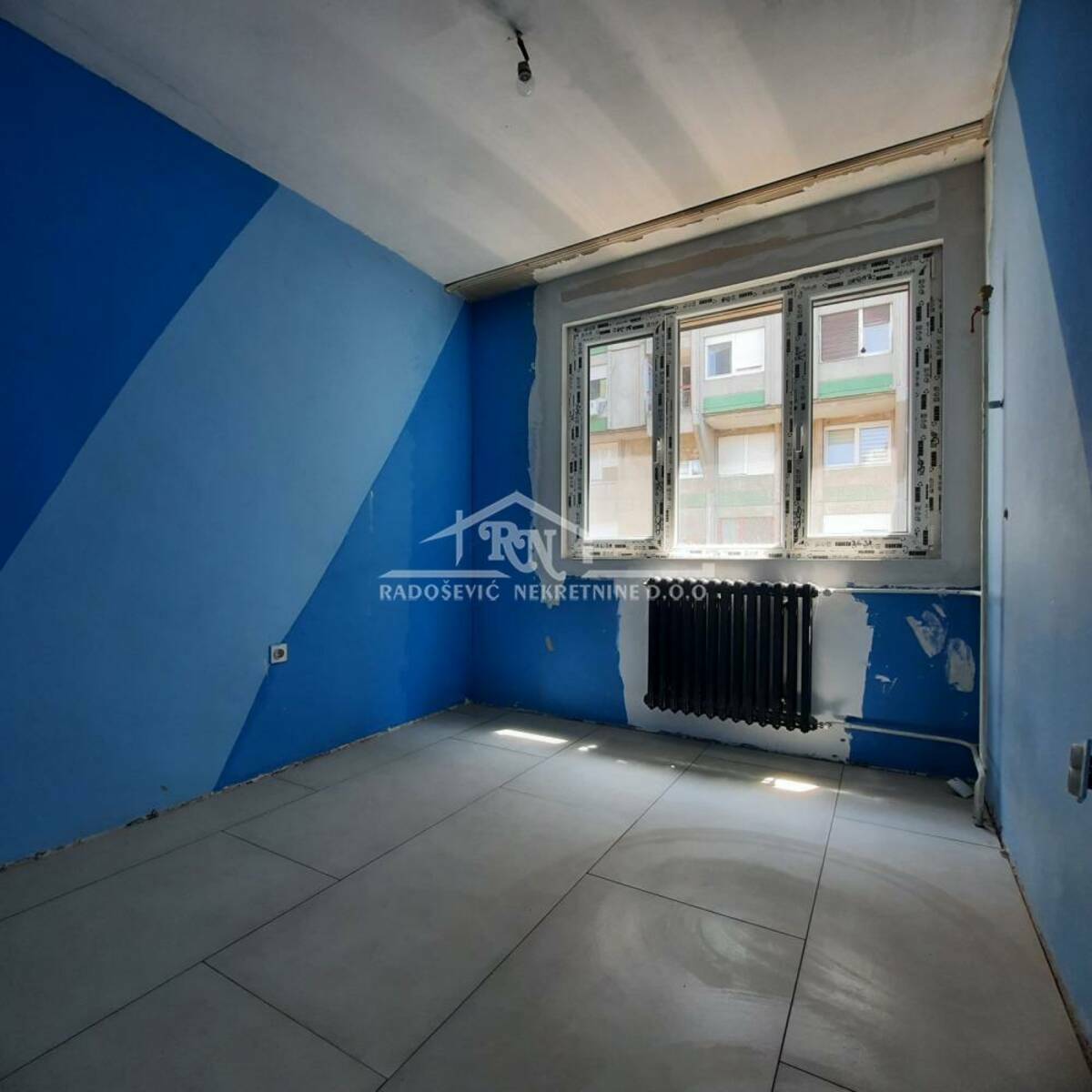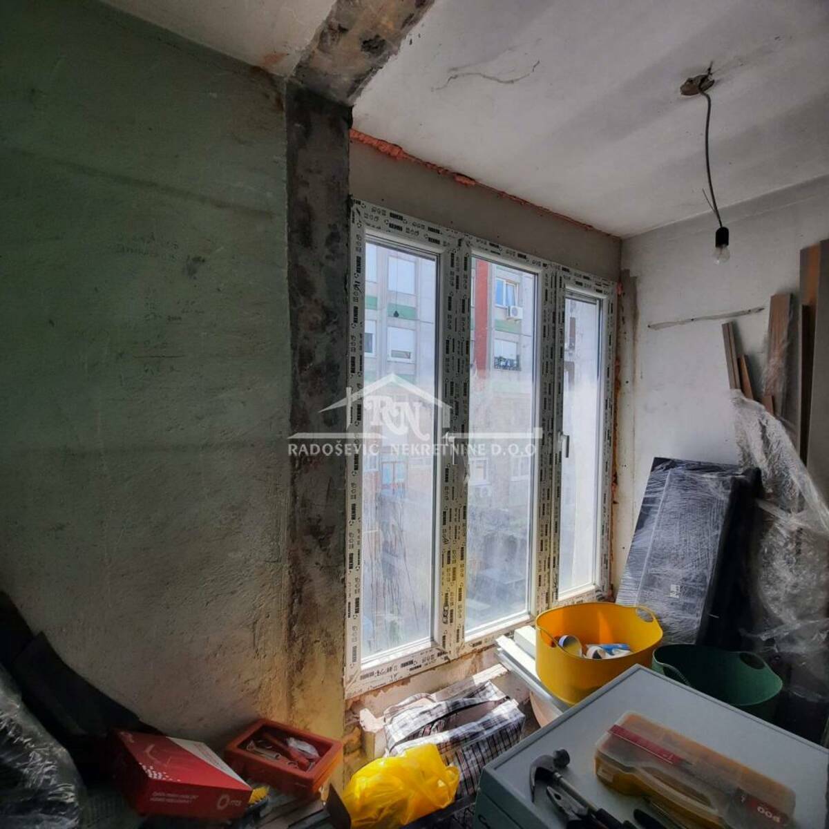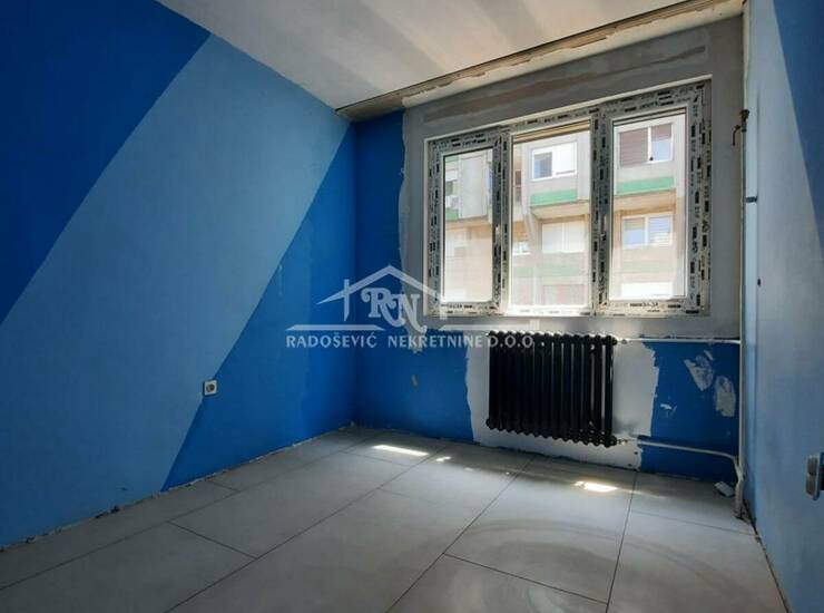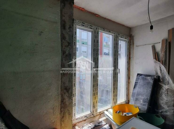 Odmah useljiv stan na trećem i poslednjem spratu, u zgradi sa liftom, upisane korisne površine 79m2, građevinske 84m2. Dnevnom boravku je pripojena velika lođa, a manja lođa i toalet su adaptirani u drugo kupatilo. Stan se prodaje sa započetim renoviranjem. U celom stanu je na podu urađena keramika, postavljena je pvc stolarija, urađena je nova elektro instalacija i vodovodne cevi, ugrađene su dve klime i blind vrata. Sve ostalo je za adaptaciju. Stan ima protočnu toplu vodu, dvostrano je orijentisan, sa pogledom na park i puno zelenila. Sastoji se od hodnika, dva kupatila, kuhinje, dnevne sobe sa trpezarijom, dve spavaće sobe i podruma. U toku je preknjižba na ime vlasnika.