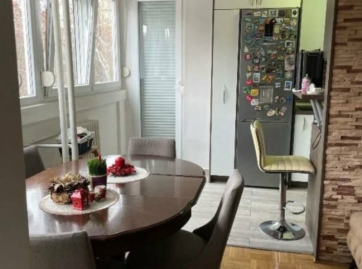 U ponudi odličan, prostran, veoma svetao trosoban stan, dvostrano orijentisan, na drugom od osam spratova, sa centralnim grejanjem. Stan je delimično renoviran, ali održavan.