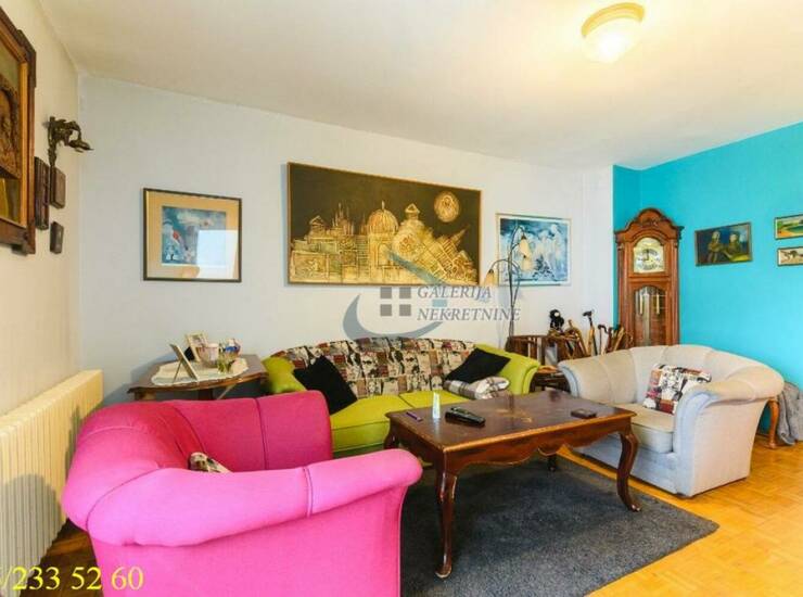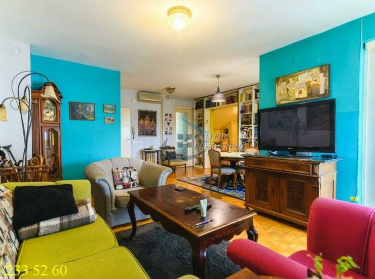 U prilici smo da Vam ponudimo vrlo komforan trosobni stan na petom spratu šestospratnice sa liftom, izgrađene 90ih godina prošlog veka. Zgrada je uredno održavana i u dobrom stanju spolja i iznutra. Pretežno istočno orijetnisan i vrlo svetao. Prostorije su funkcionalno raspoređene, pa je prostor maksimalno iskorišćen. Značajna udaljenost od ulice i zelena površina ispred zgrade, garantuju mir u stanu iz kog se pruža lep i otvoren pogled prema Savi. U dobro održavanom stanju je, pa značajna ulaganja nisu neophodna. Pola stana je natkriveno stanovima na spratu iznad. Krov iznad druge polovine stana je pre par godina sređen. Komforu doprinose dva mokra čvora, kupatilo i toalet, kao i predivna terasa sa otvorenim pogledom, idealna za uživanje. Spavaći deo je odvojen od dnevnog. Iznad dela stana je tavanski prostor, sa direktnim pristupom, koriste samo vlasnici ovog stana kao ostavu. Grejanje je centralno. Stanu pri