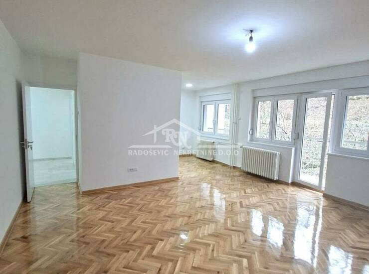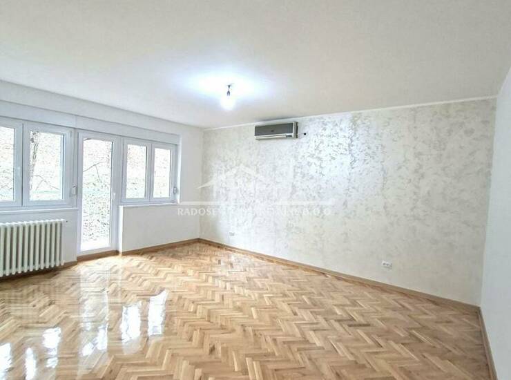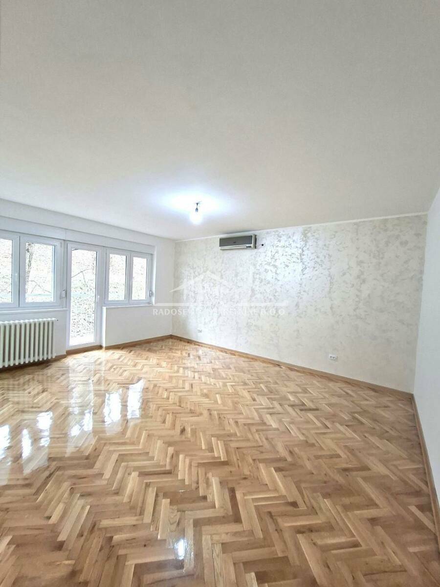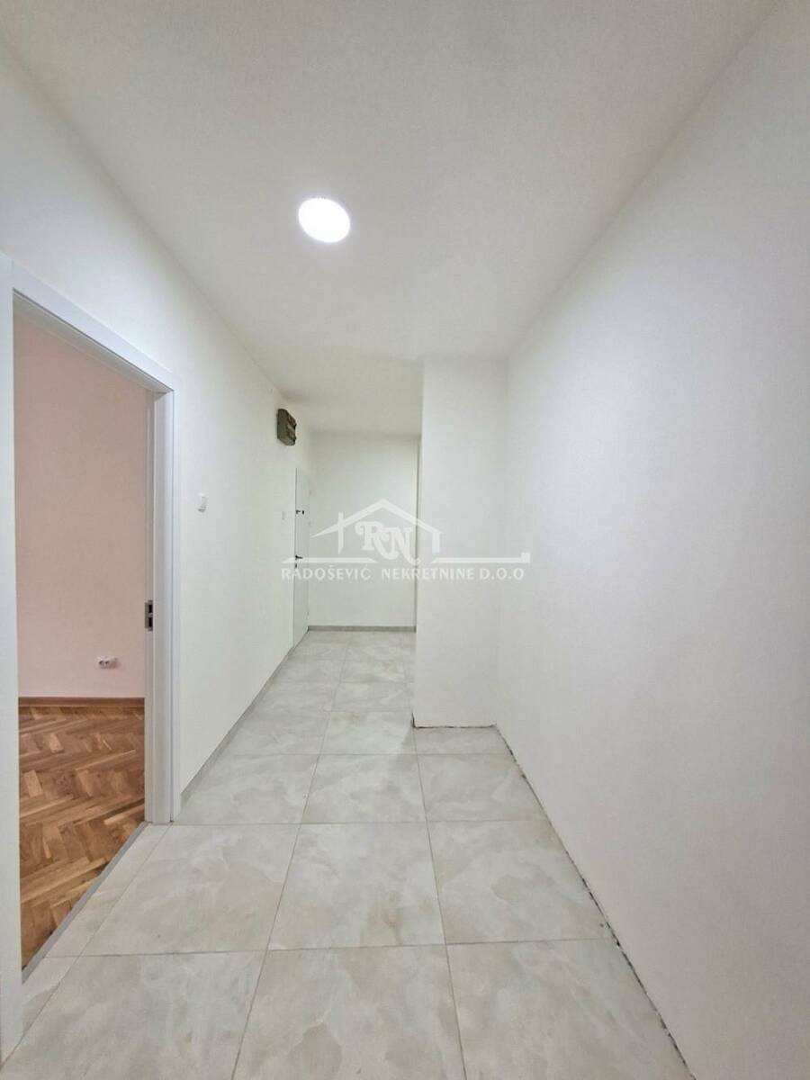Na prodaju uknjižen, kompletno renoviran, odmah useljiv, trosoban stan, površine 75m², uknjižen kao prizemlje, a na terenu visine visokog prizemlja.
