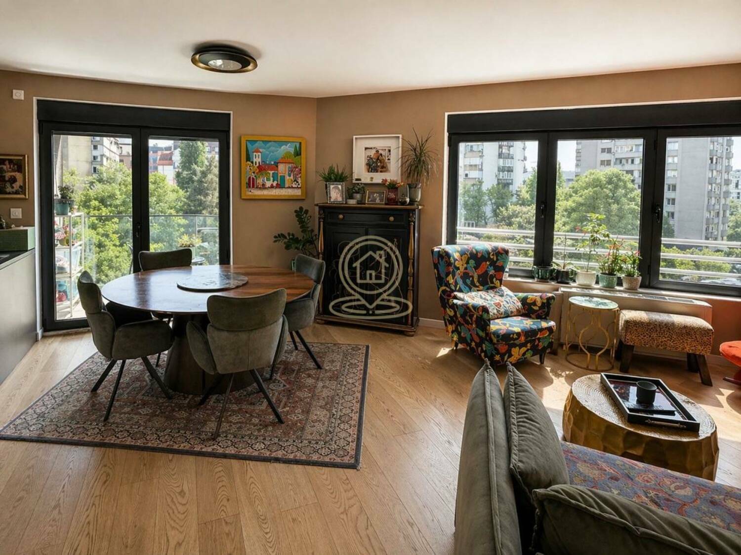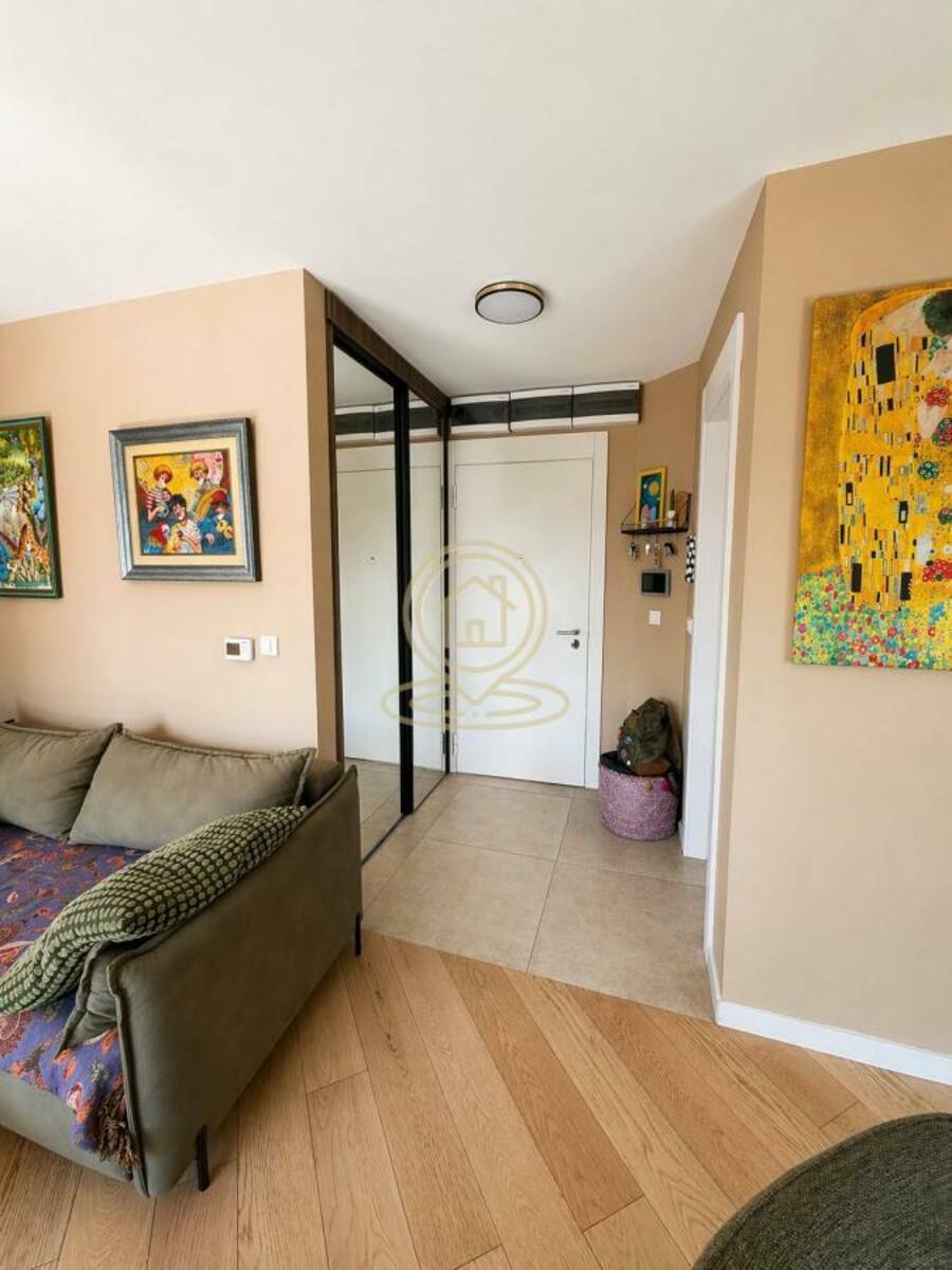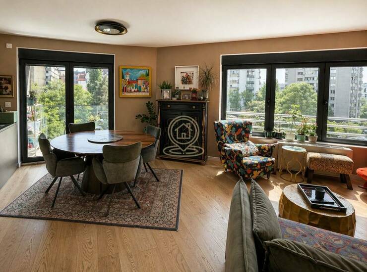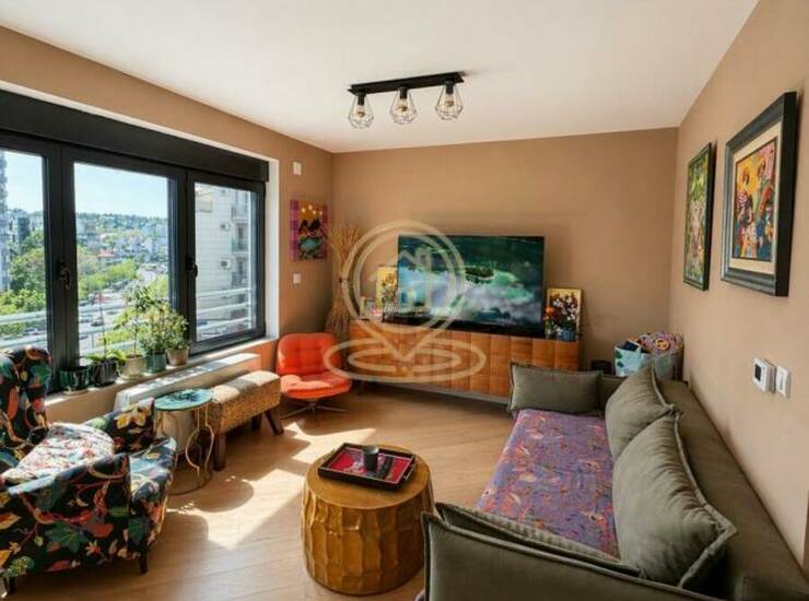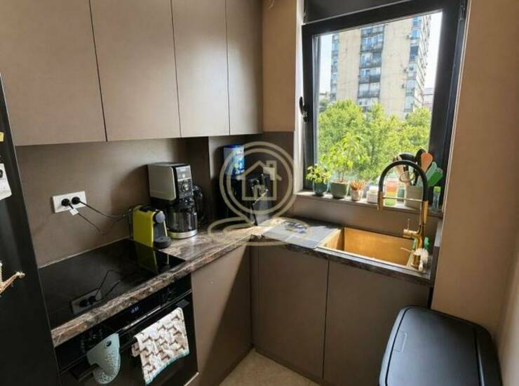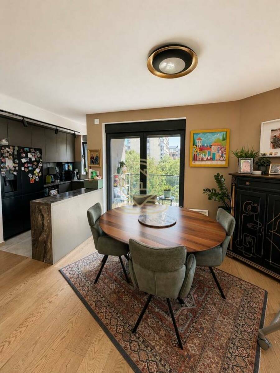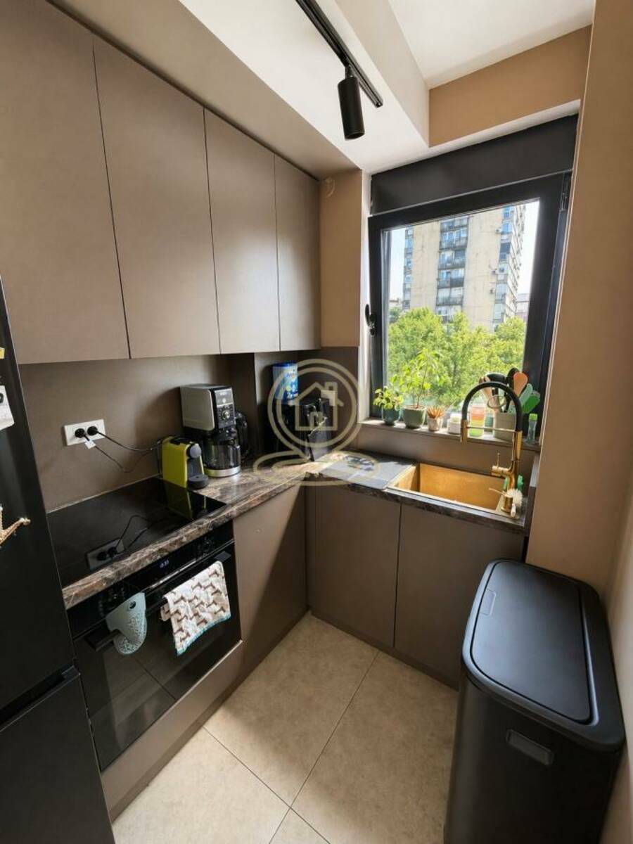 Veliki prozori obezbeđuju dosta prirodne svetlosti tokom celog dana, čineći prostor izuzetno prijatnim za boravak. Kuhinja je opremljena kvalitetnim uređajima (Bosch rerna, mašina za sudove i indukciona ploča), kao i Hisense side-by-side frižiderom. Stan se prodaje sa delom nameštaja.