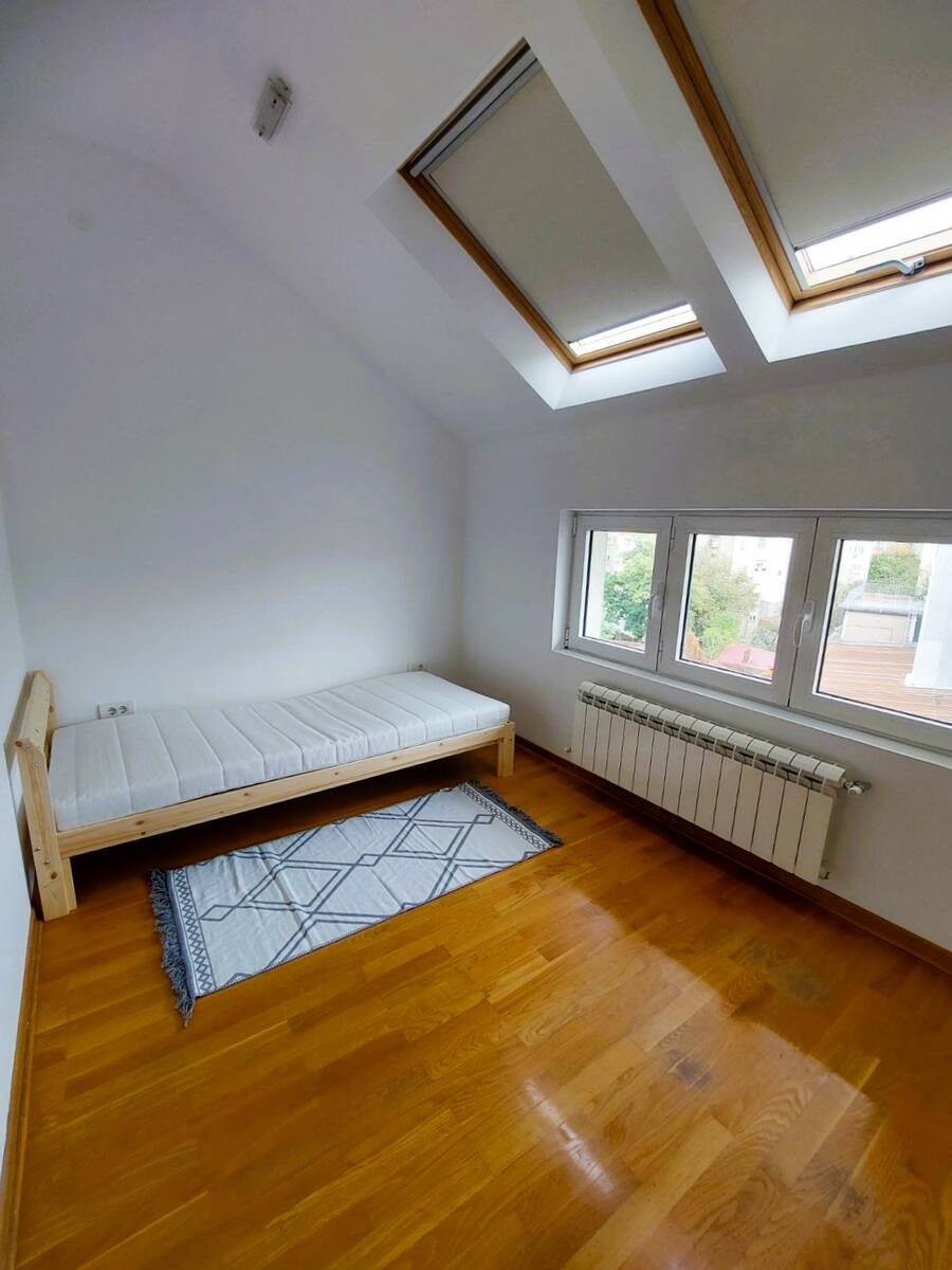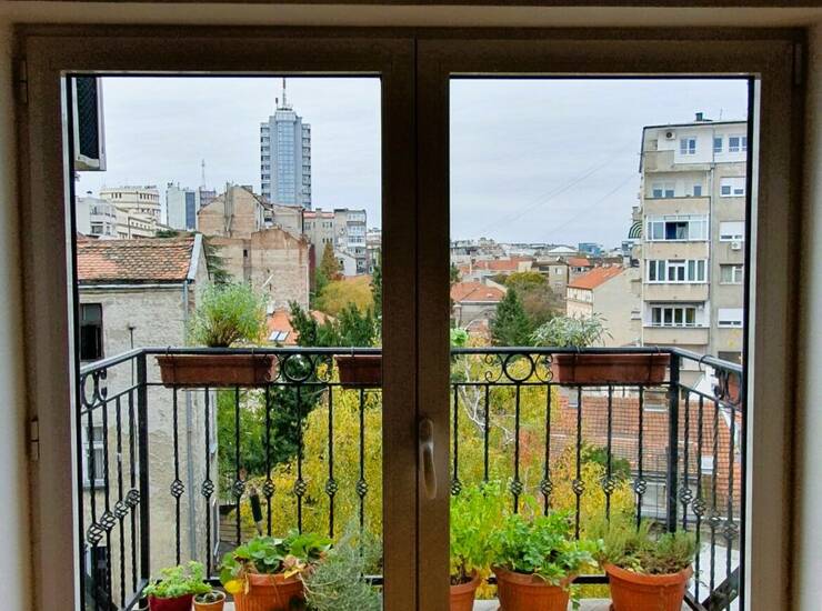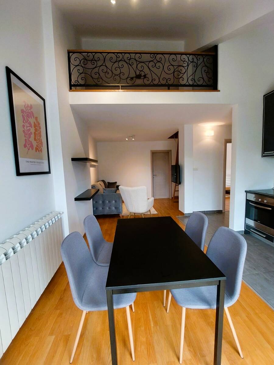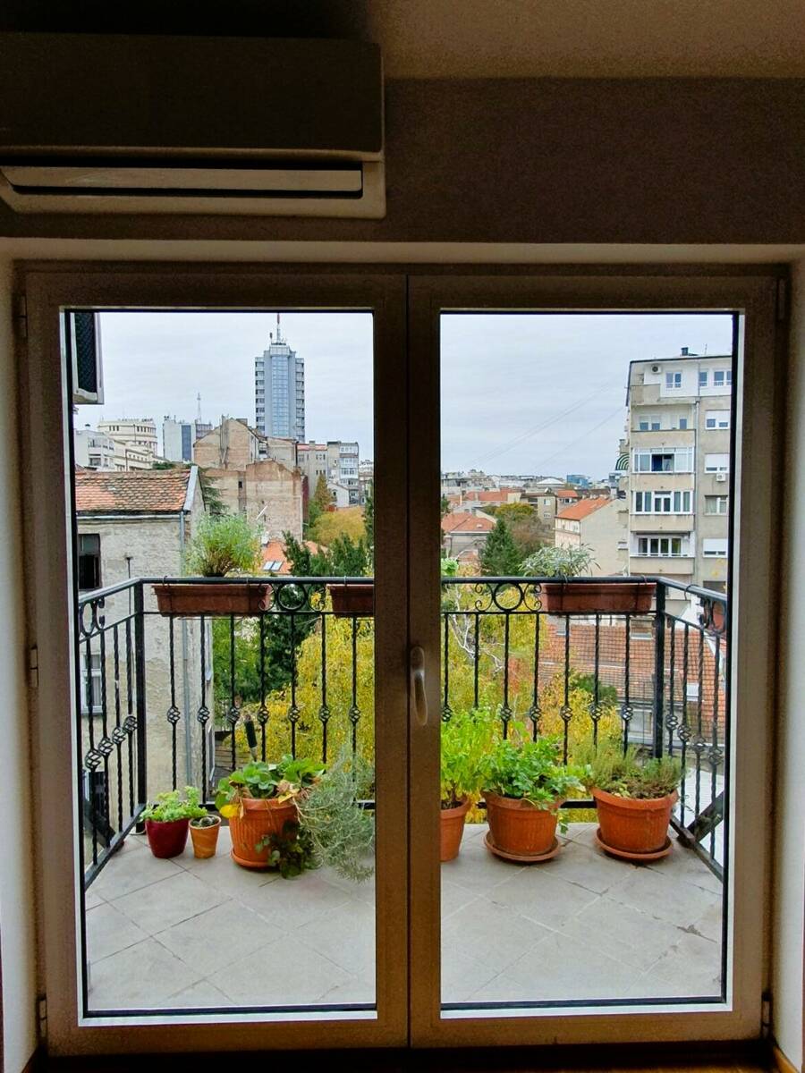 Stari grad, Hilandarska, Jelene Ćetković, trosoban stan od 58m2, uknjižen na 55m2 plus terasa 3m2. Stan na četvrtom spratu od četiri, u predratnoj zgradi, nadogradnja iz 2014. Godine, kada je ugrađen i lift. Sastoji se od hodnika, dnevnog boravka sa kuhinjom i trpezarijom, dve spavaće sobe, kupatila i terase. Visina dnevnog boravka je 4.6 metara pa je napravljena galerija pogodna za hobby prostor, prostor za decu ( visina galerije je 160cm) ili dodatno spavanje. Povrsina galerije je 10 m2. U produzetku je prostor za odlaganje. Dvostrano je orijentisan, sa etažnim grejanjem, podno i radijatori, sa klimama u svakoj sobi.