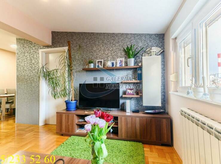 U prilici smo da Vam ponudimo funkcionalan trosoban stan koji se nalazi na poslednjem, trećem spratu odlično održavane stambene zgrade novije gradnje, bez lifta. Stan je dvostrano orijentisan, veoma svetao i bez potrebe za dodatnim ulaganjima. Raspored je dobro organizovan i omogućava komforno korišćenje svih prostorija, pa je prostor maksimalno iskorišćen i prilagođen savremenim potrebama stanovanja. Stolarija, kao i keramika, u odličnom su stanju, tako da je potrebno jedino higijensko krečenje. U stanu ostaje kuhinja sa ugradnim elementima, projektovana od strane arhitekte, a takođe ostaju i svi ugradni ormari. Grejanje je centralno sa kalorimetrom, što omogućava kontrolu troškova.