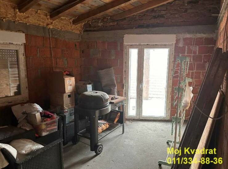 Trenutno je u funkciji prizemlje i podrum, dok je potkrovlje urađeno u crvenoj fazi sa kompletno izvedenom eletro-energetskom instalacijom grejanja, codom i kanalizacijom, i PVC stoarijom. Na spratu koji se sastoji od deganžmana, dve sobe, kupatila i terase potrebno je završiti obradu zidova, podova i fasade. Krov je potpuno nov, sa urađenim olucima i opšivkama.