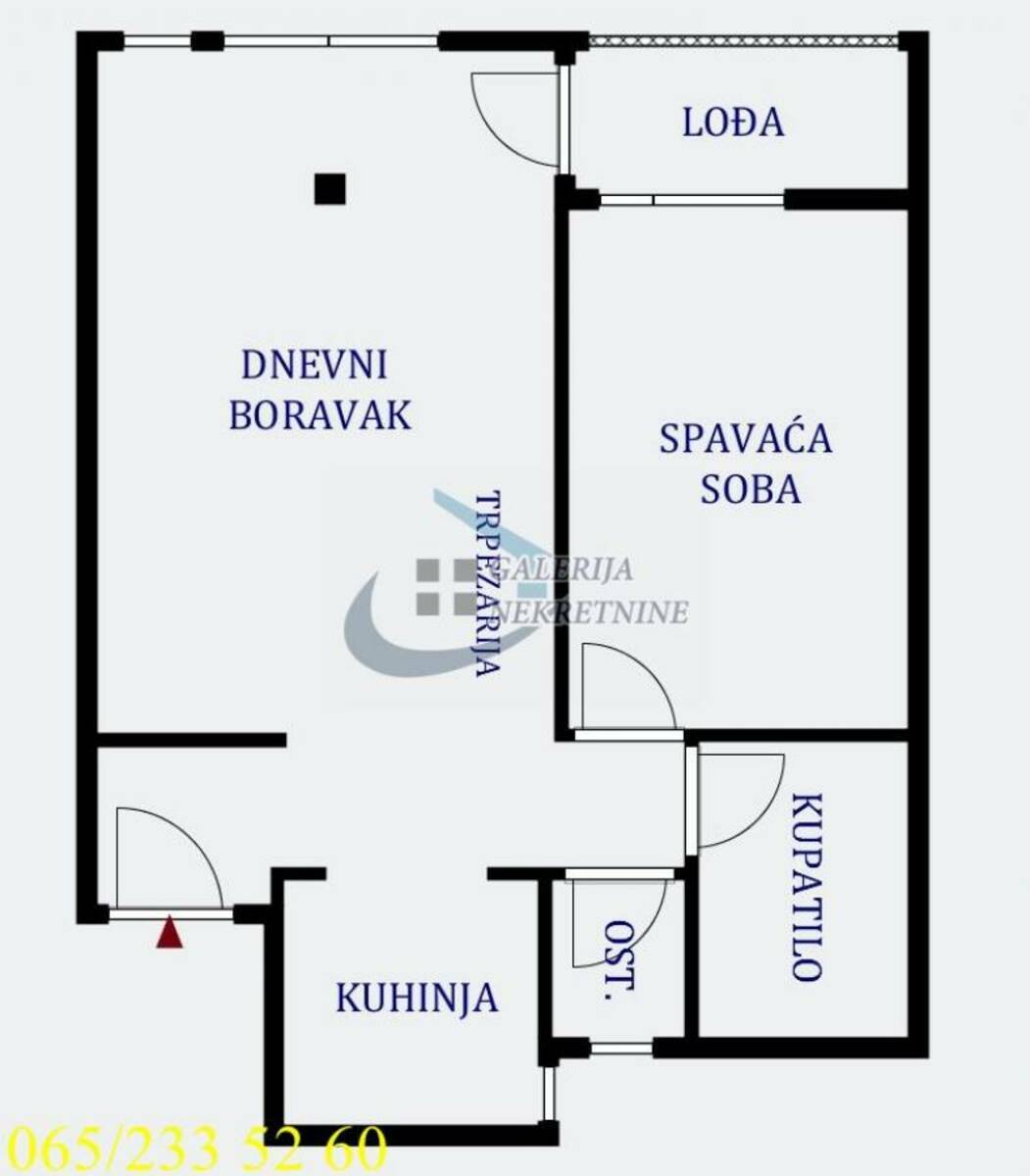 Od prostorija: mali ulazni hodnik, kuhinja, dnevni boravak sa trpezarijskim delom, spavaća soba, kupatilo, ostava,