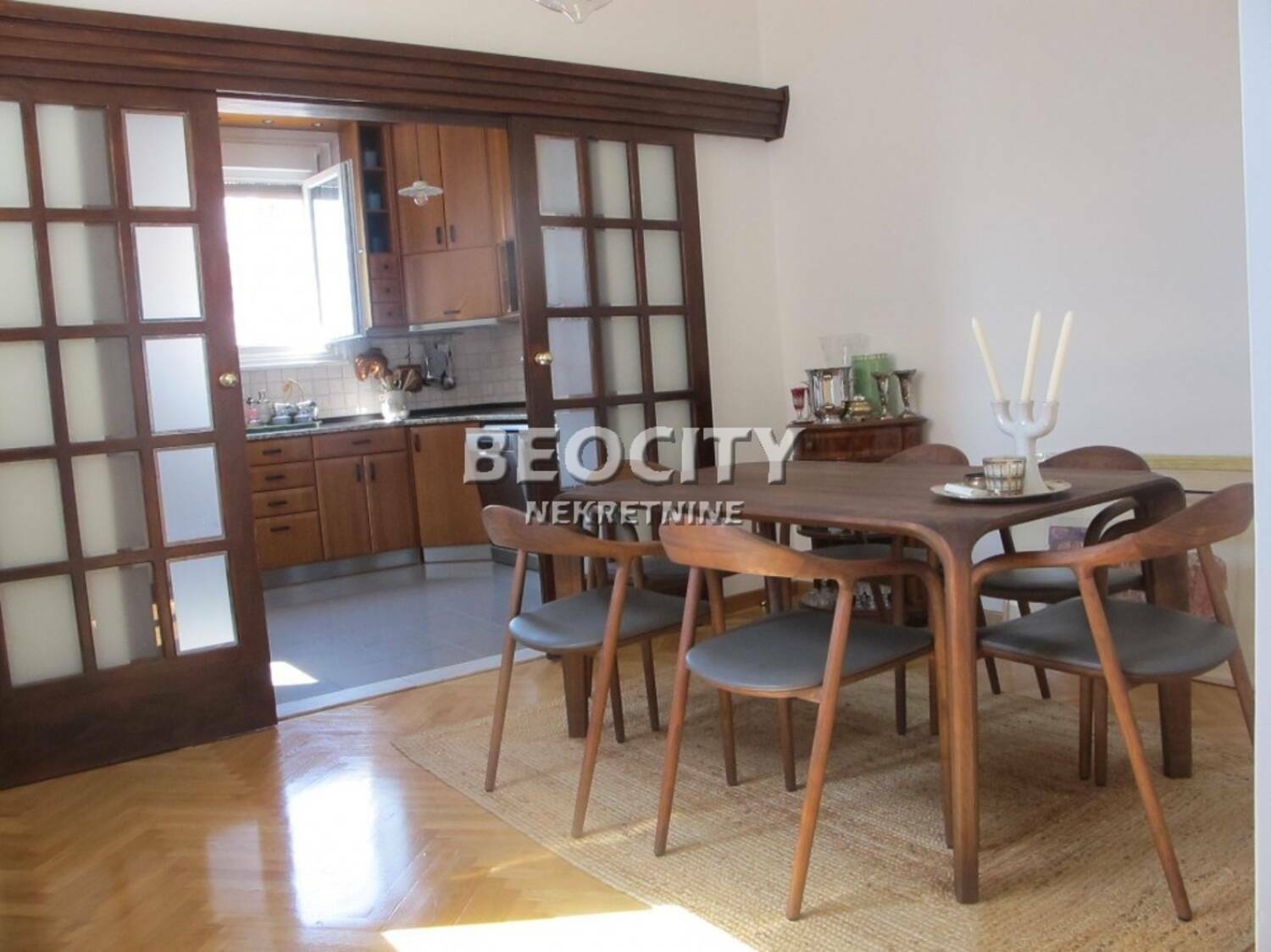 Stan je veoma svetao, zahvaljujuci velikim prozorima i dvostranoj orijentaciji, visoki plafoni i klasican salonski raspored