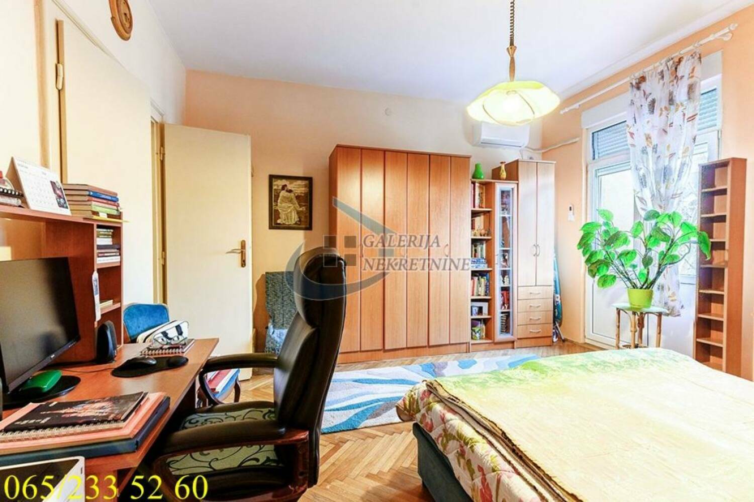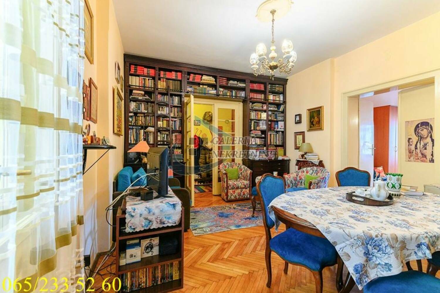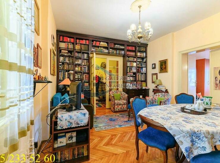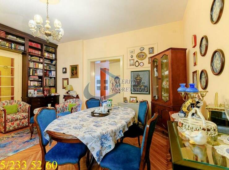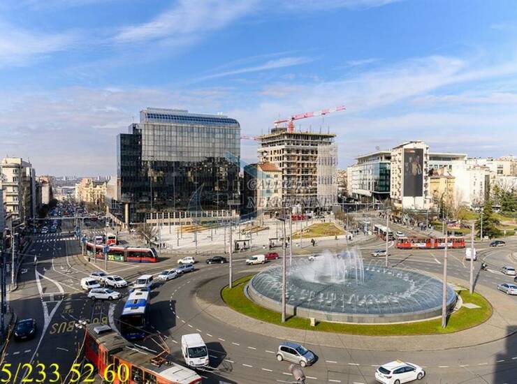 U prilici smo da Vam ponudimo funkcionalnu komfornu trosobnu nepokretnost na četvrtom spratu od šest, u zgradi predratne gradnje sa liftom i video nadzorom. Zgrada obnovljene fasade i sa malim broj stanova smeštena je na samom trgu Slavija. Krasi je široki ulazni hodnik i lepo održavno stepenište. Stan je salonskog tipa, debelih zidova i visinom od 3,15m, lako je adaptibilan zbog dva ulaza koja daju mogućnost potpune izmene prostora. Dvostrano orijentisan (istok-jug), tokom celog dana sunčan i vrlo osvetljen. Stan je prostorno odlično rešen sa funkcionalnim rasporedom prostorija, održavan i uredan. Dnevni boravak iz koga se izlazi na zastakljenu terasu je prostran i objedinjen sa trpezarijom. Veća spavaća soba je komforna i sa izlaskom na terasu, sa idealnim pogledom na fontanu na Slaviji. Na treću terasu se pristupa iz manje spavaće sobe. Grejanje na struju omogućava racionalizaciju troškova.