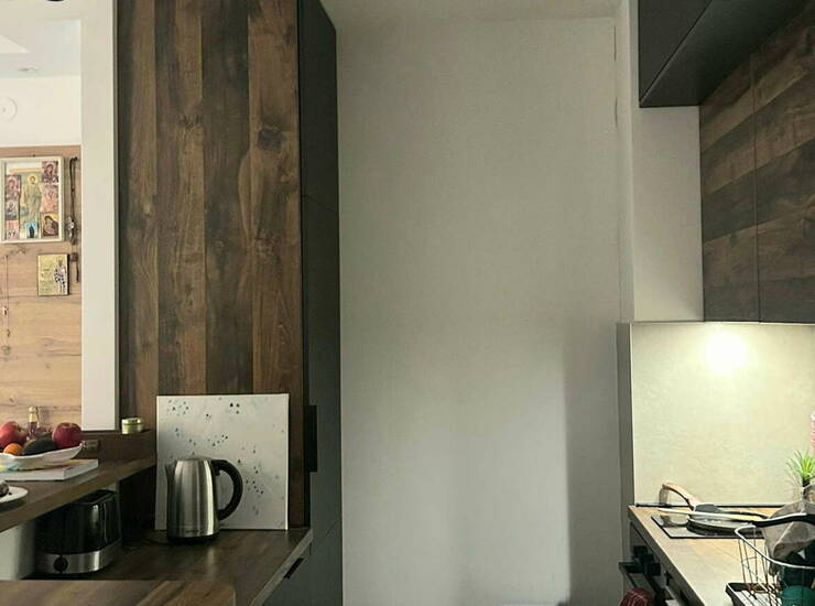Prostorije: hodnik, dnevni boravak sa kuhinjom i trpezarijom (šank), odvojen spavaći blok sa dve spavaće sobe koje imaju izlaz na lođu, kupatilo i toalet.