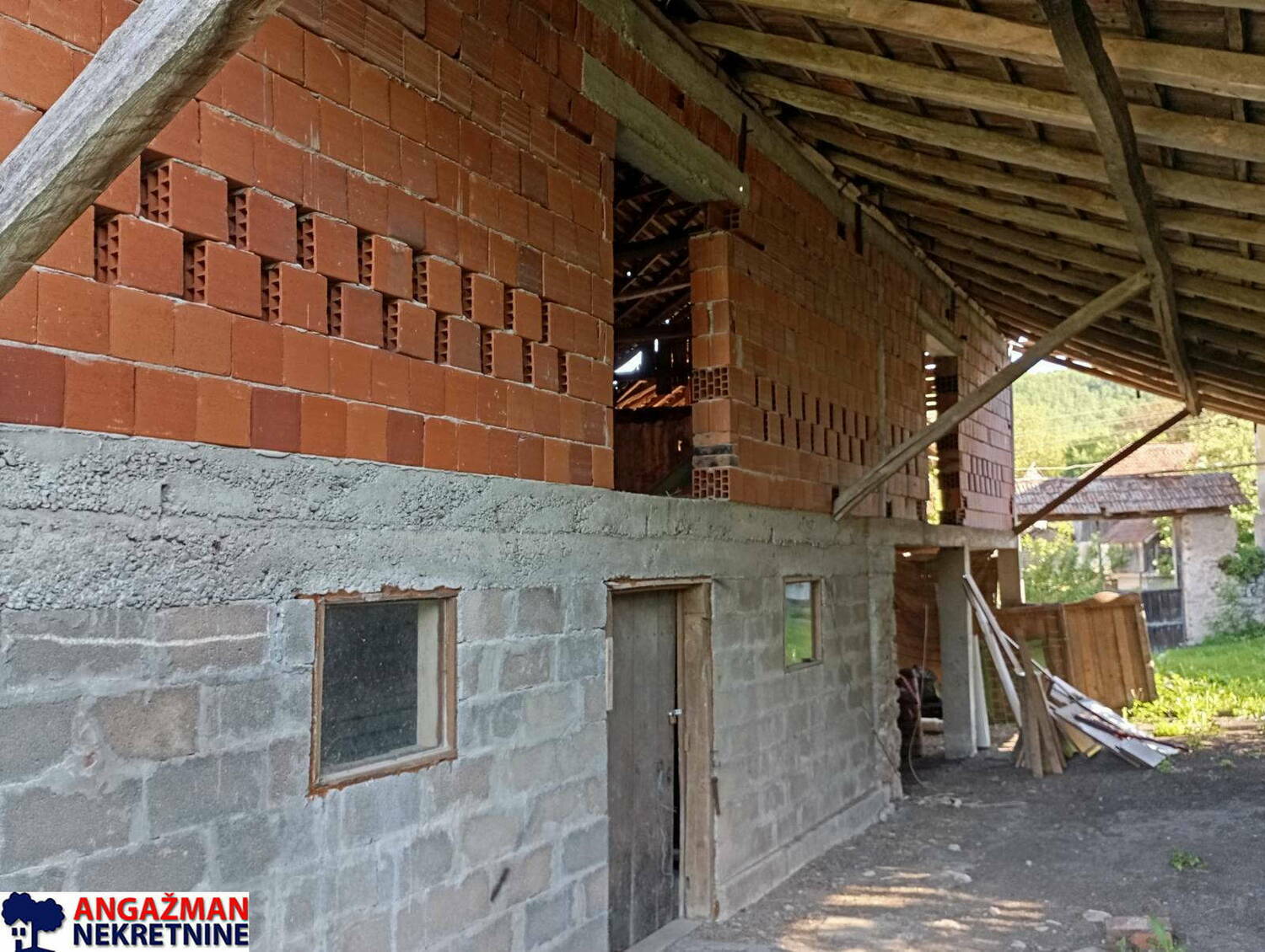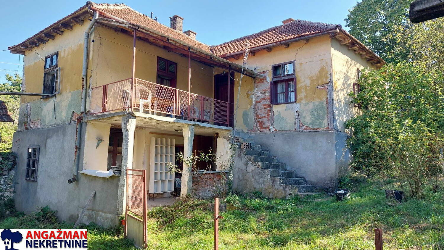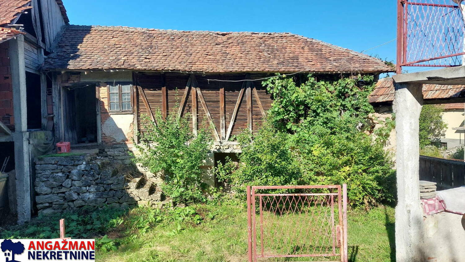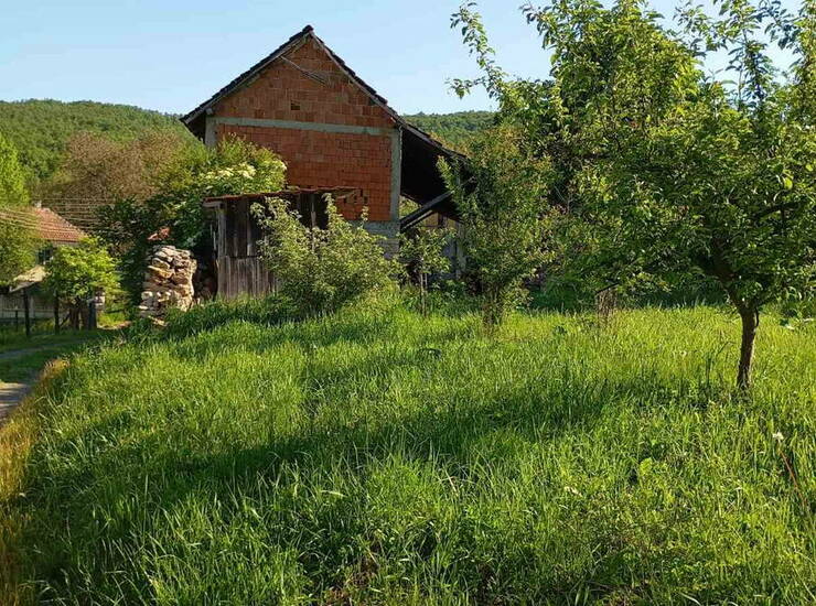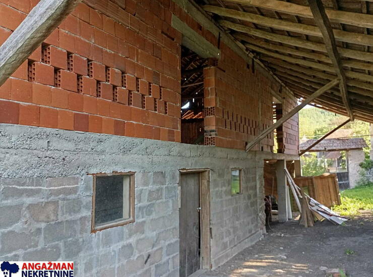 Prodaje se porodična kuća (u osnovi 75m2, PR+I) sa pomoćnim objektima štala, ambar i koliba (40+24+38m2) na građevinskoj parceli od 7a 13m2, na koju se nadovezuje voćnjak od 4a 70m2 što ukupno iznosi 11a 83m2.