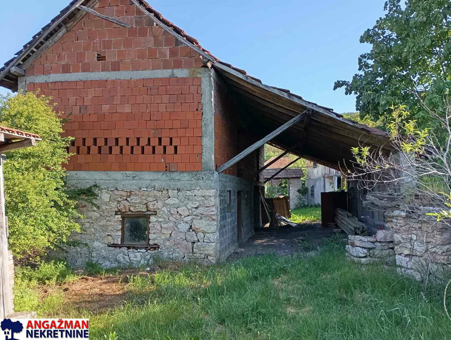 Preko puta je ambar sa podrumskom prostorijom na koji se nadovezuje štala sa senikom od čvrstog materijala. WC je poljski.