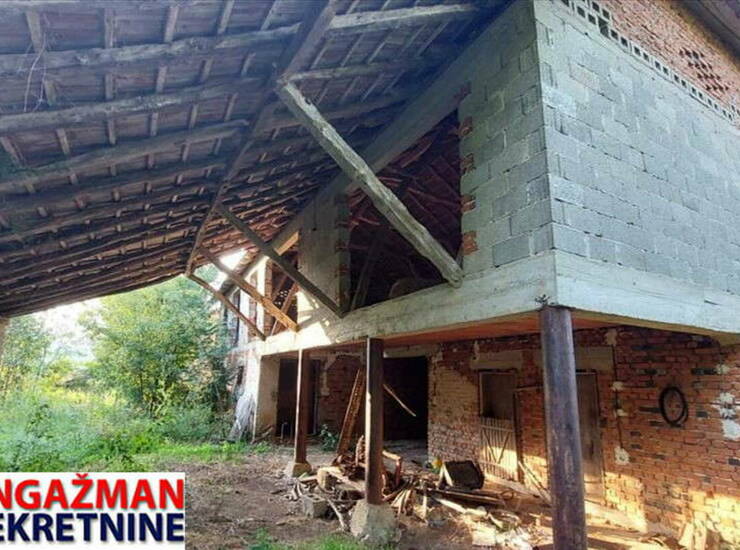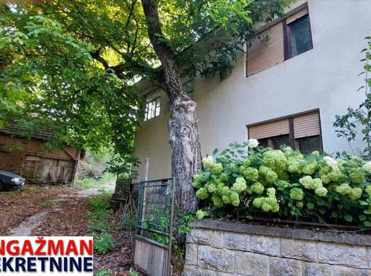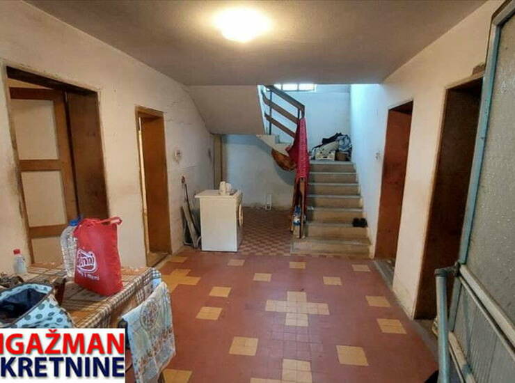 Prodaje se kuća (pr+1) sa izlaskom stepenicama u potkrovlje, sagrađena sedamdesetih od 216m2 u osnovi 108m2, uknjiženo 61m2 na mestu gde je bila sagrađena stara kuća, nova u procesu legalizacije, sa pomoćnim objektom od 33m2 uknjiženim i štalom sa senikom od oko 200m2 (neuknjiženom), na dve parcele građevinska 8a 5m2 i poljoprivrednom od 27a 73m2 povezane u jednu celinu (domaćinstvo).; Kuća je sagrađena od cigala i betona, sa krovom na 4 vode koji se može pretvoriti u stambeni prostor, prizemlje: predcoblje 14m2, dve sobe od po 15m2, kuhinja 15m2, kupatilo 8m2, ostava 7m2, sprat sa 4 sobe sa 15m2 i terasom, stolarija metal i aluminijum i drvo izrada iz sedamdesetih godina.; Na nadmorskoj visini oko 500m odakle se može videti planina Rtanj.; Struja trofazna, dvotarifno brojilo, voda izvorska.; Lokacija: na rubu sela, istočno.; Plavim tačkicama označene parcele na geokarti.; Uknjiženo.; Agencijska provizija 2%. ,