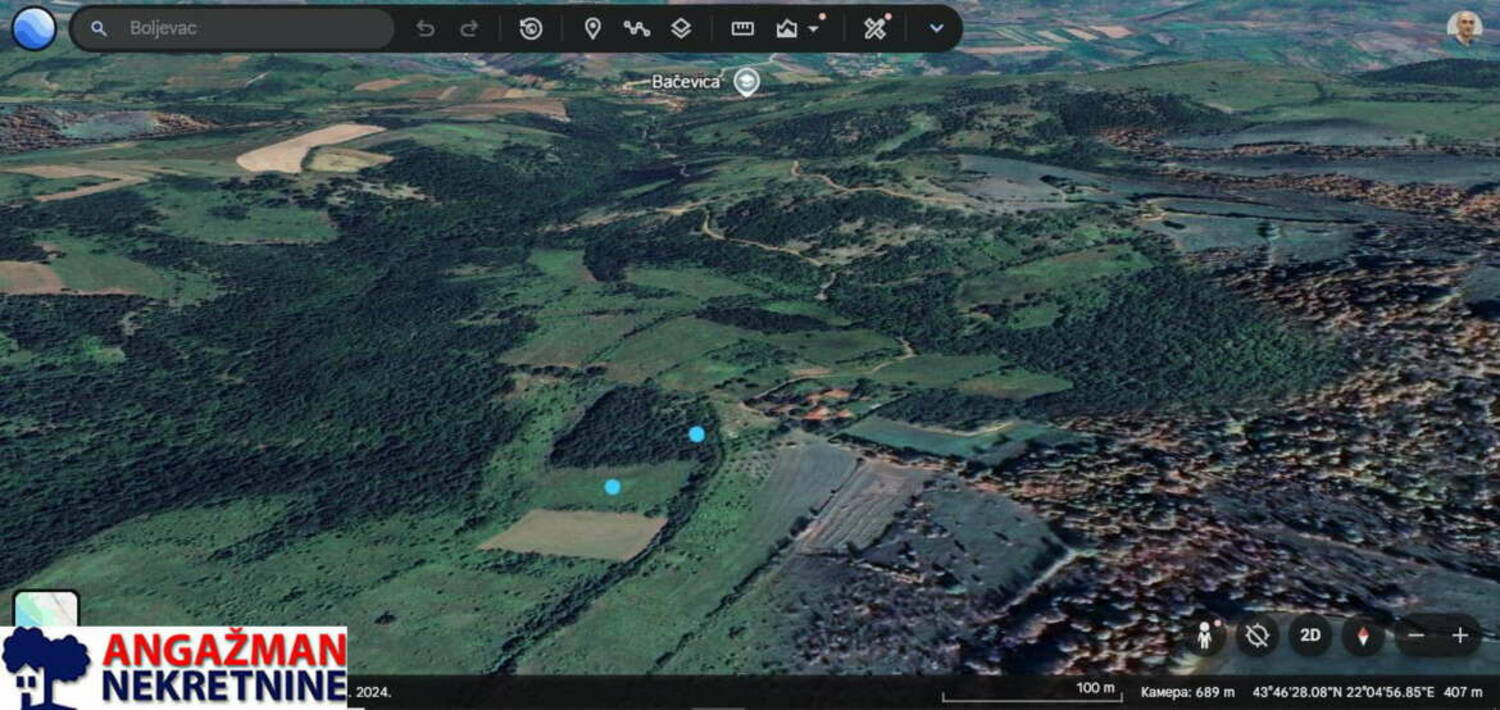 Prodaje se poljoprivredno zemljište 1ha 59a 51m2, istočno od planine Rtanj i od Boljevca 16 km, od sela Bačevice 2 km južno makadamskim putem, posle kiše treba terensko vozilo.