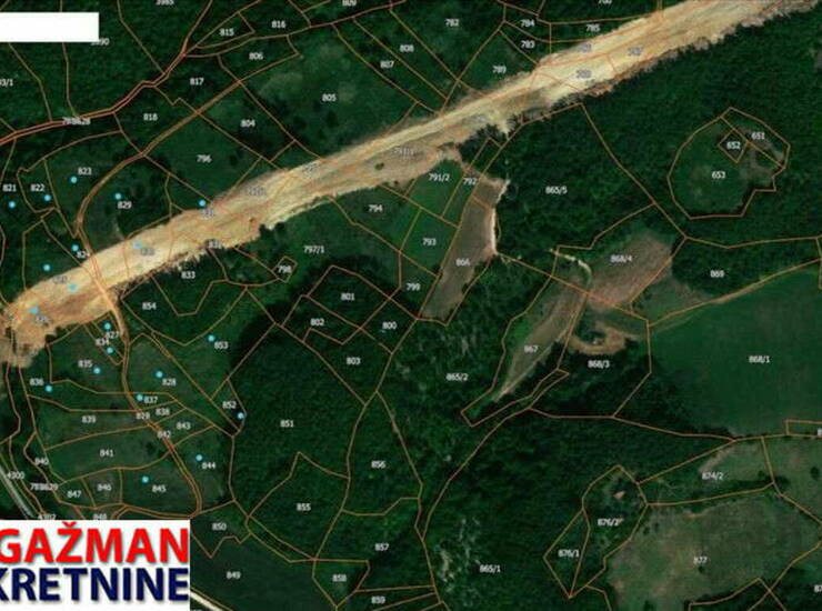 Parcele su označene plavim tačkicama na geo snimku.