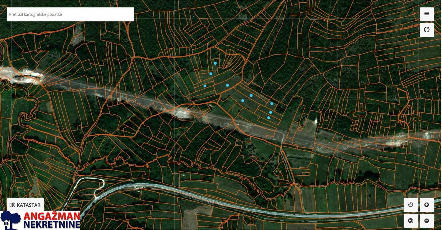 Plave tačkice na geokarti označavaju parcele.