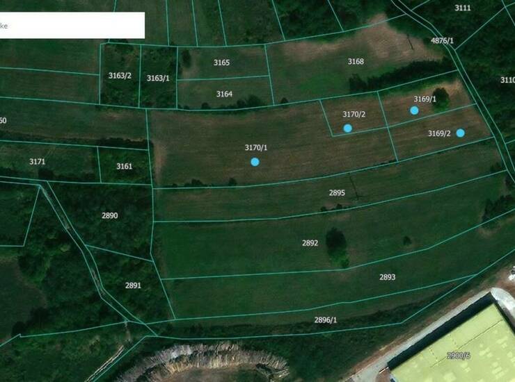 Parcele obeležene plavim tačkicama na geosnimku. Mogućnost kupiti i južnu parcelu od 36a 86m2.