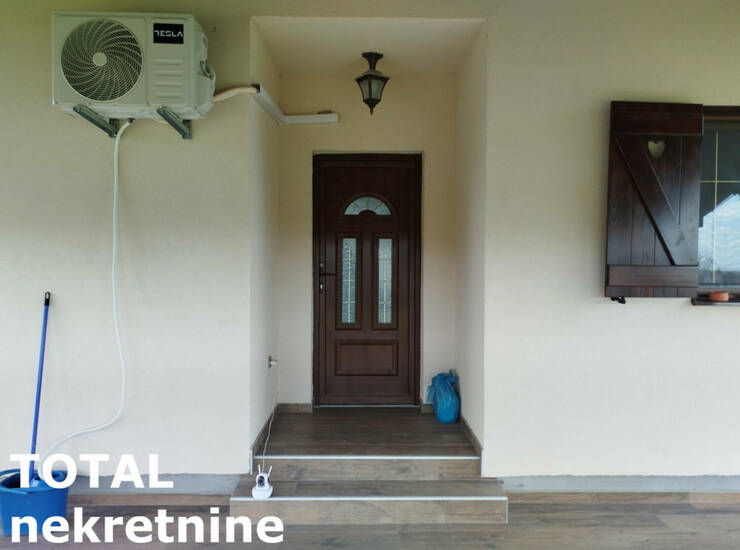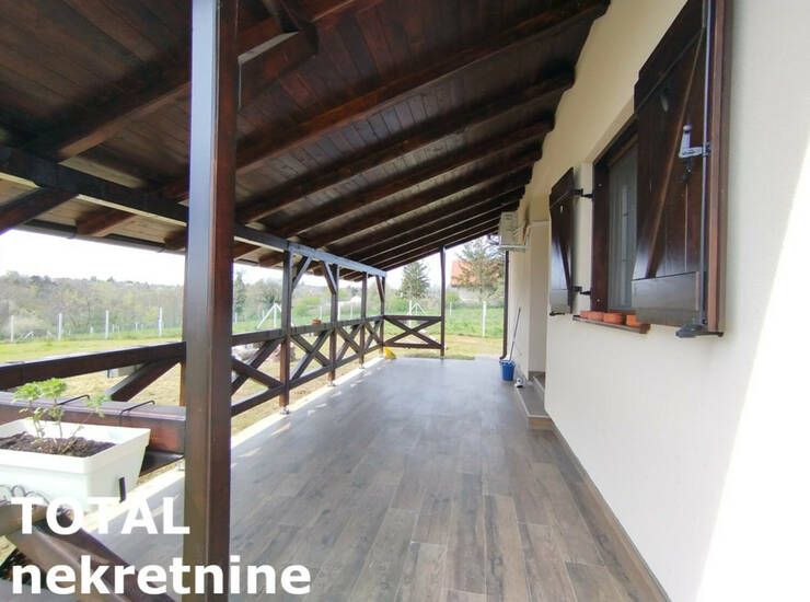 Terasa od 24 m² pruža predivan pogled – idealno mesto za jutarnju kafu ili večernji zalazak sunca.Kuća je rađena izuzetno pažljivo, sa kompletnim planovima za vodu i struju. Ugrađeni su Bosch radijatori, inverterska klima, pvc stolarija i ručno rađene drvene žaluzine (šalukatre). Osvetljenje je moderno, sa plafonjerama koje imaju podešavanje svetla na daljinski.Dodatne pogodnosti su puno praktičnih detalja -kapija na daljinsko upravljanje, betonirana staza do kuće i asfaltni prilaz, česma u dvorištu, razvučeni kablovi za interfon i kamere.