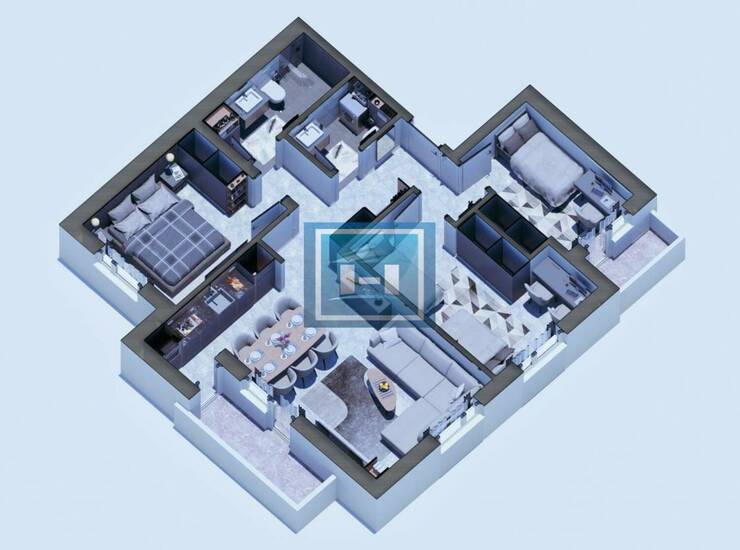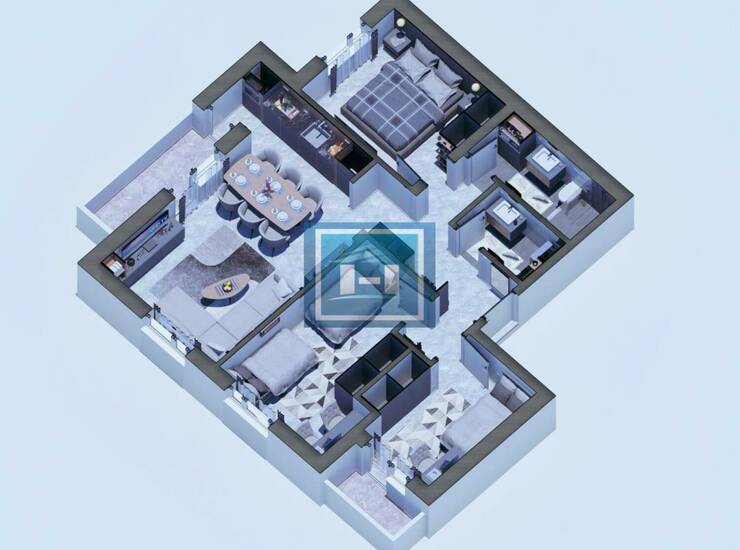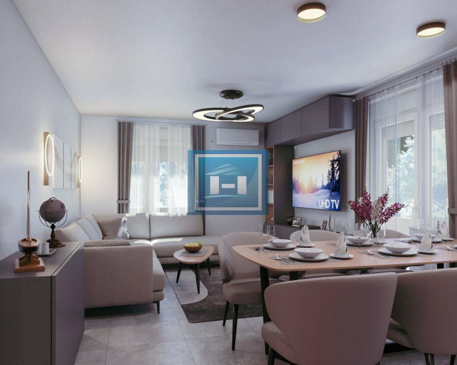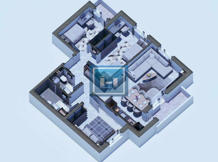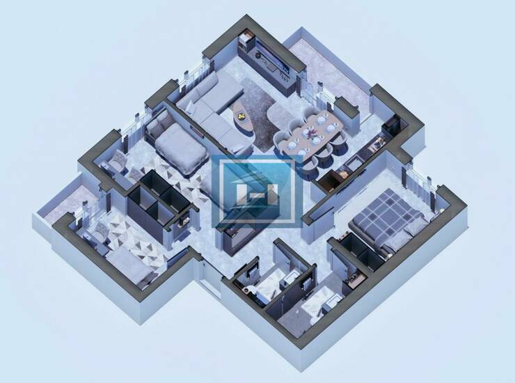 Stan raspolaže praktičnim ulaznim hodnikom koji vodi ka prostranom dnevnom boravku povezanom sa kuhinjom i trpezarijom u otvorenom konceptu. Noćna zona obuhvata dve komforne spavaće sobe, dok su odvojeni toalet i moderno kupatilo dodatna pogodnost za svakodnevni život. Terasa doprinosi dodatnom komforu i obilju prirodne svetlosti.