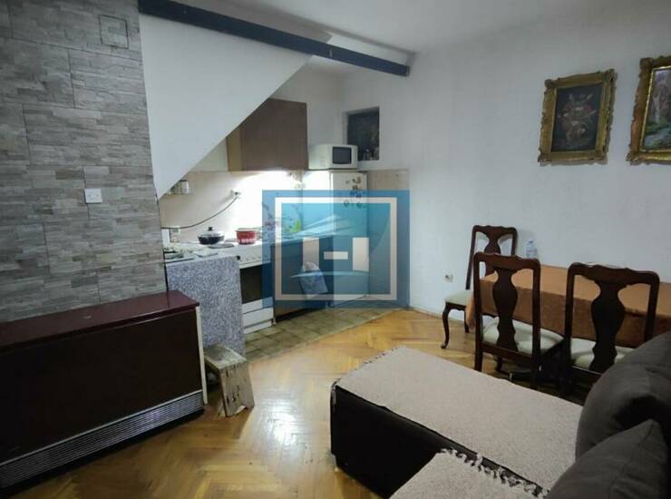 Poseduje prizemlje i potkrovlje.U prizemlju kupatilo,hodnik,dnevna soba sa kuhinjicom, u potkrovlju galerija i 1 spavaća soba. Sve sobe imaju otvoreni pogled prema gradu .