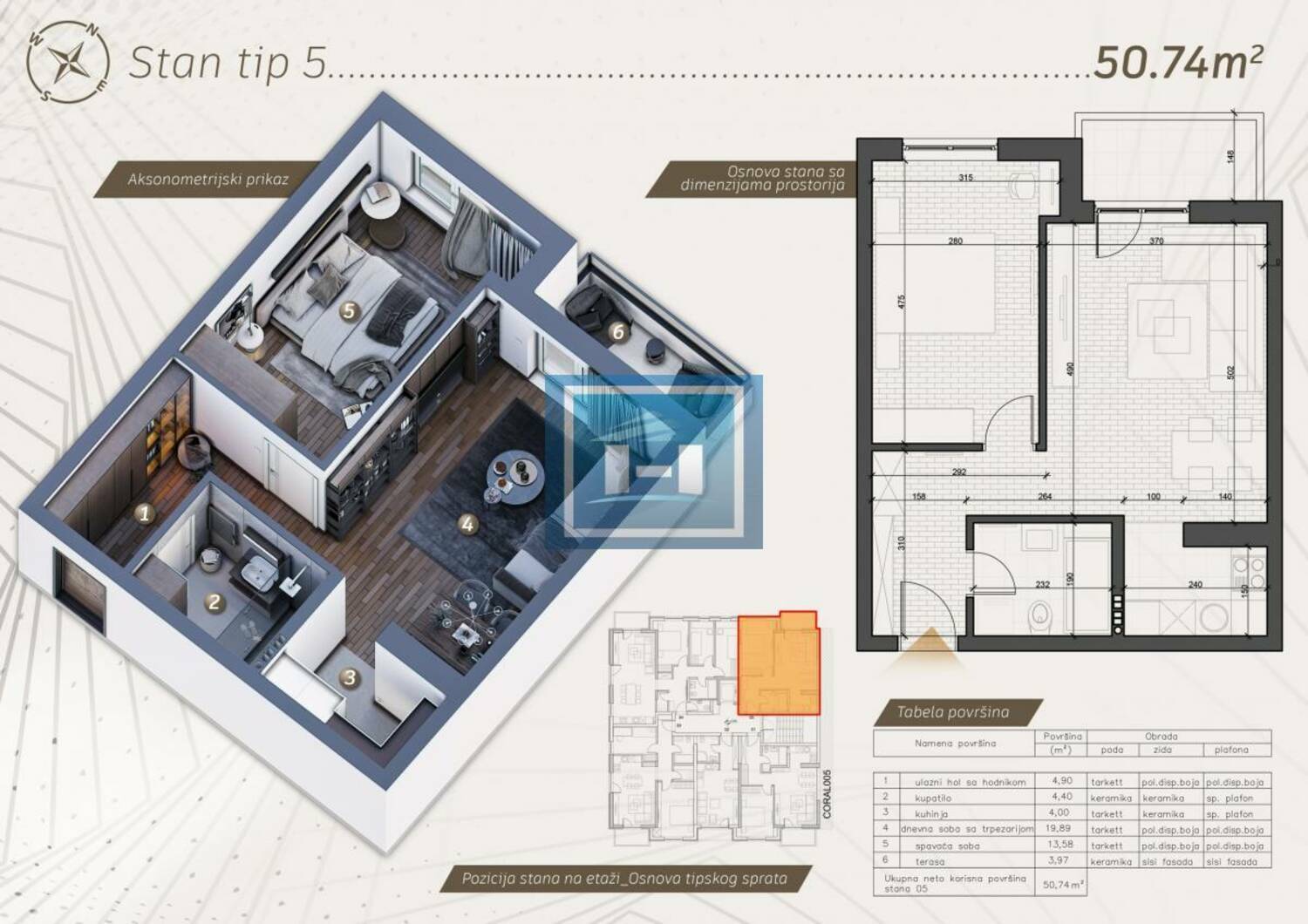 Prodaje se moderan i funkcionalan stan površine 50,74m², idealno raspoređen kako bi svaki kvadrat bio maksimalno iskorišćen, sa mogućnošču povračaja PDV-a.