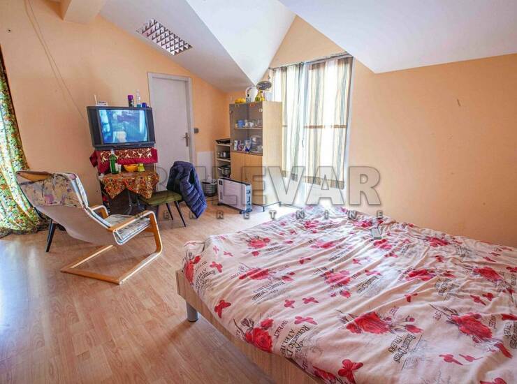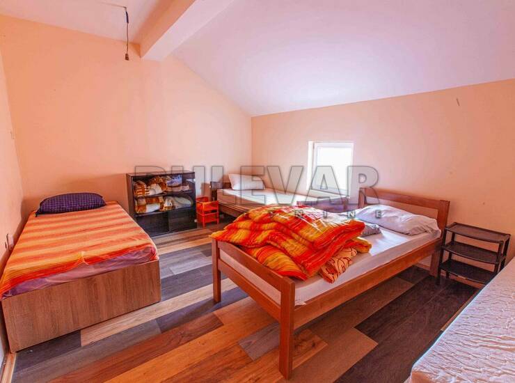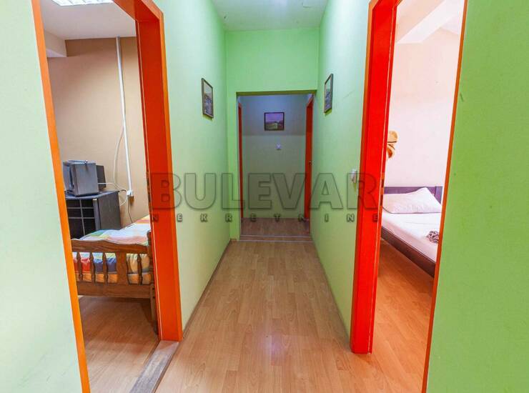 Na prodaju kuća u Donjoj Vrežini, 660m2, na placu površine 3 ara. U prizemlju kuće se nalaze dva već izdata poslovna prostora u funkciji magacina i radionice. Na prvom spratu je prostor u sivoj gradnji, na drugom spratu postoji devet soba, dnevni boravak sa kuhinjom i trpezarijom, tri tuš kabine, tri toaleta i dve terase. Podna obloga laminat i keramika. Stolarija je kombinovana. Kupovina samo za goovinu. Dvorište nije veliko, ali je uređeno i pruža mogućnost parkiranja i boravka u prijatnom okruženju. Privatna svojina jednog lica. Za više informacija ili fotografija pozovite agenciju.