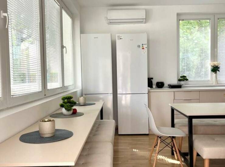 Na raspolaganju su i rerna, mikrotalasna pećnica, mini-bar, aparat za kafu i kuvalo.