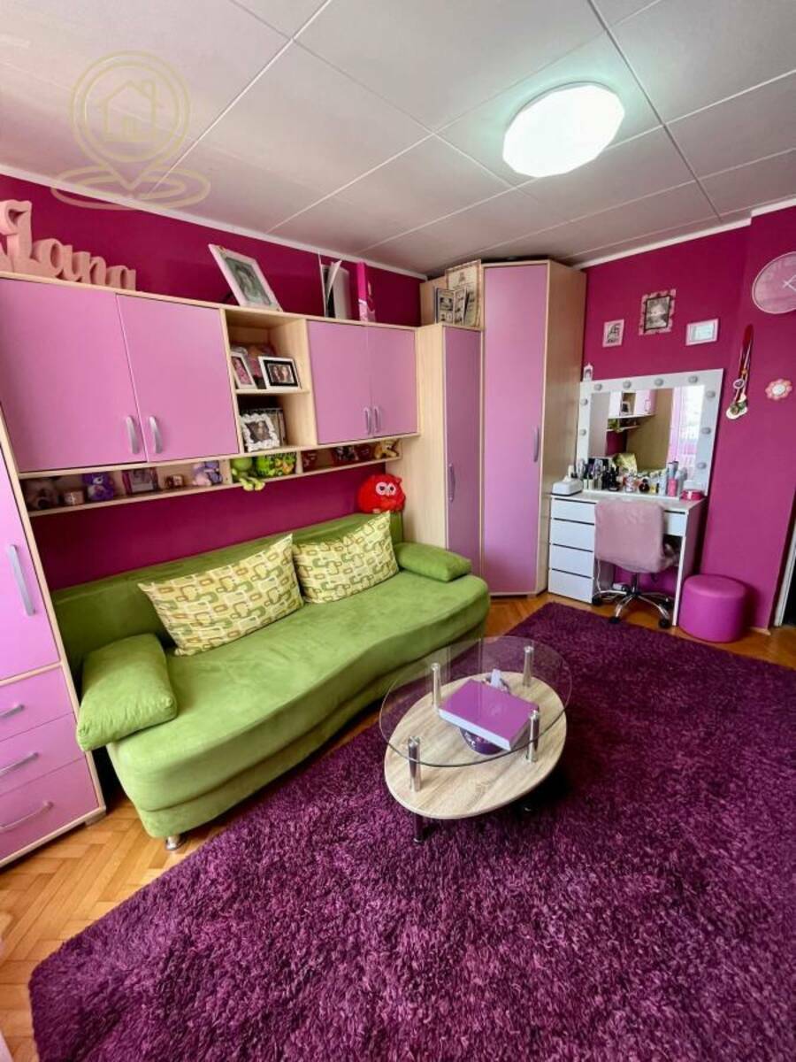 Stan ima odlican raspored sa odvojenim spavacim delom. Prodaje se polunamesten.