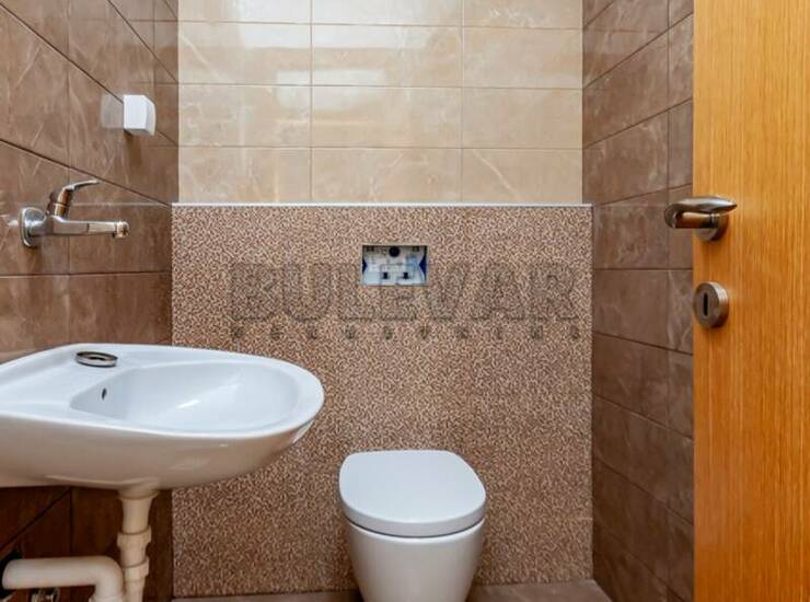 Spoljna aluminijum-drvo stolarija, podne obloge od parketa ekstra klase, prvoklasna keraminka i sanitarija renomiranih proizvođača, unutrašnja vrata od punog drveta, etažno grejanje.