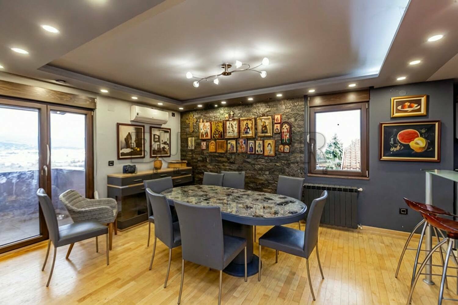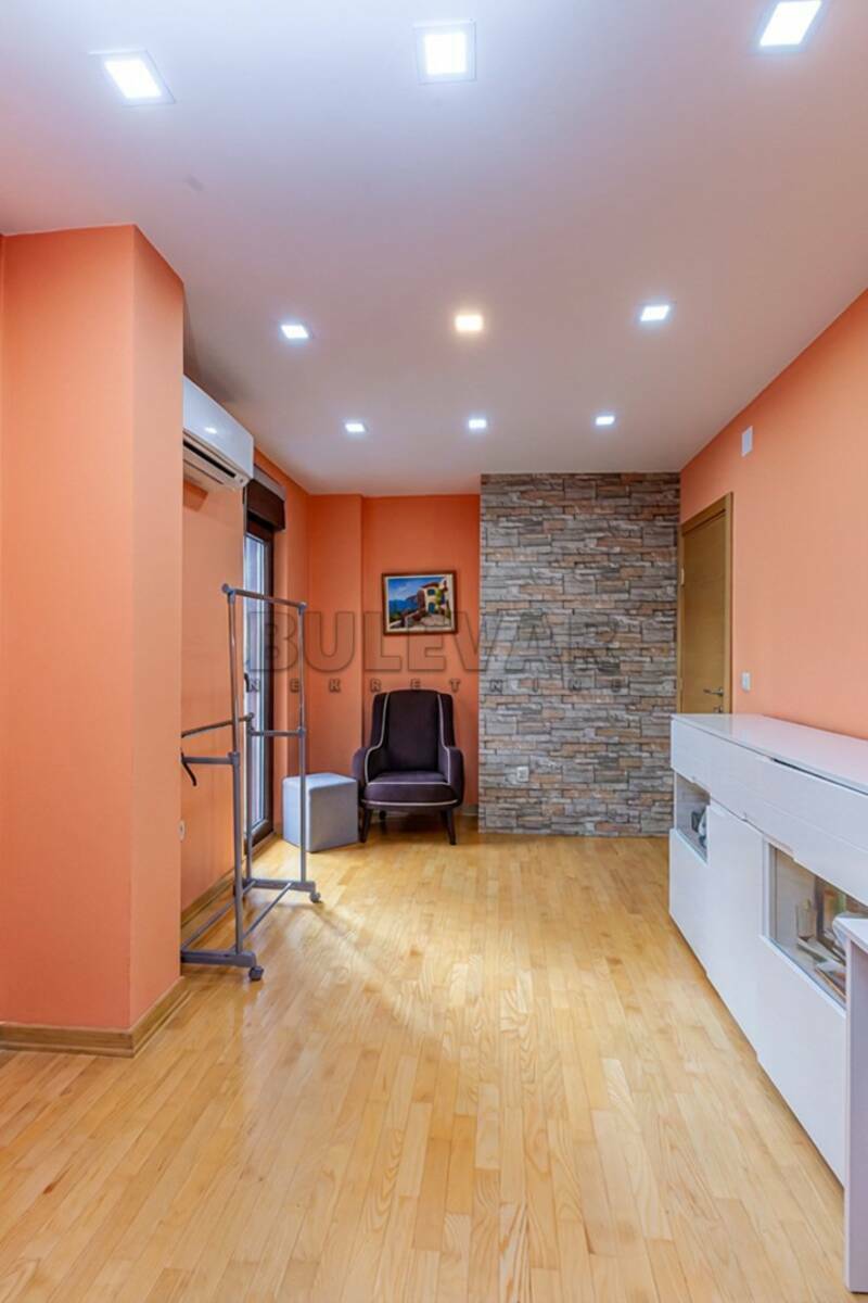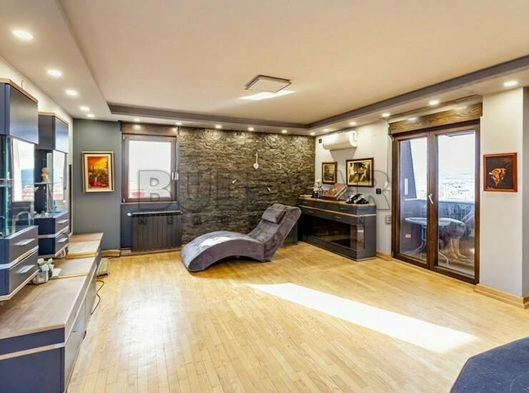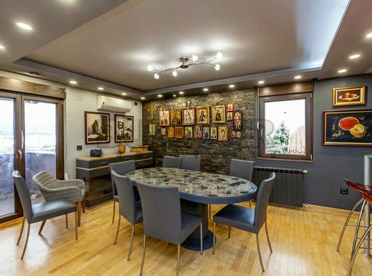 Na prodaju stan od 216 m2, na III spratu i potkrovlju kvalitetno građene i termo-izolovane stambene zgrade sa manjim brojem stanova. Sastoji se od ulaznog hodnika, prostrane dnevne sobe sa trpezarijom i kuhinjom - oko 60 -tak m2, izlazak na terasu sa prelepim pogledom ka gradu, dva kupatila, toaleta, vešernice i pet spavaćig soba, plus garderober-soba kod najprostranije spavaće sobe. Na podovima je parket i keramika, stolarija drvo - aluminujum, grejanje preko centralnog bojlera (solarnih kolektora). Iznad stana je potkrovlje koje se može urediti u dodatni stambeni ili prostor za rekreaciju. Mogućnost kupovine dve garaže, obe po 50 m2, ostava je oko 6 m2. Uknjižena privatna svojina, moguća kupovina stambenim kreditom. Za više informacija i zakazivanje razgledanja pozovite agenciju.