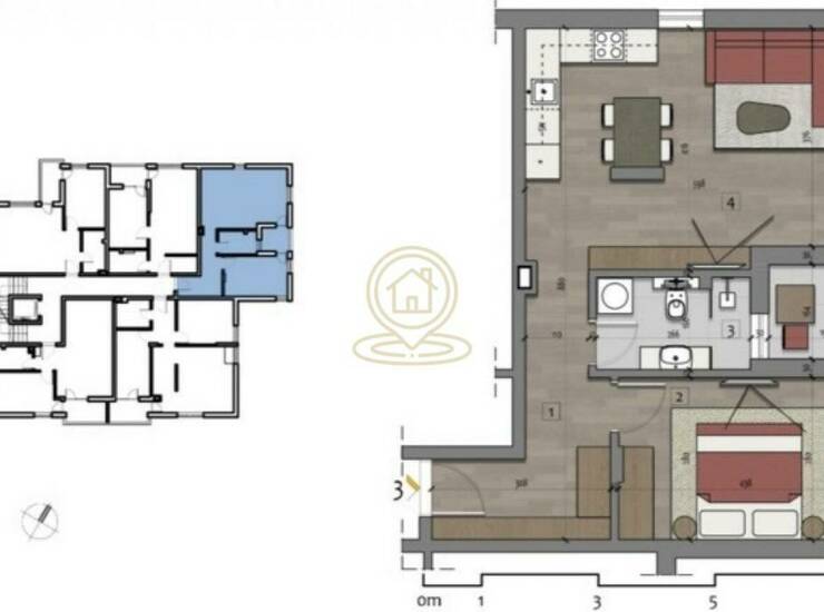 Dnevni boravak je svetao i komforan, idealan za svakodnevni život i boravak, dok spavaća soba pruža privatnost i mir. Lođa dodatno obogaćuje prostor i pruža mogućnost za opuštanje.
