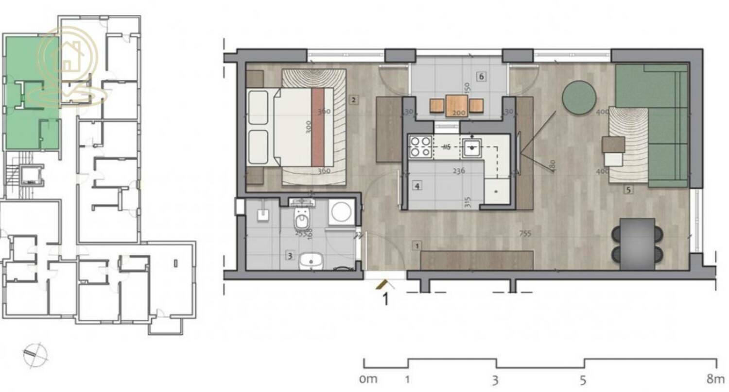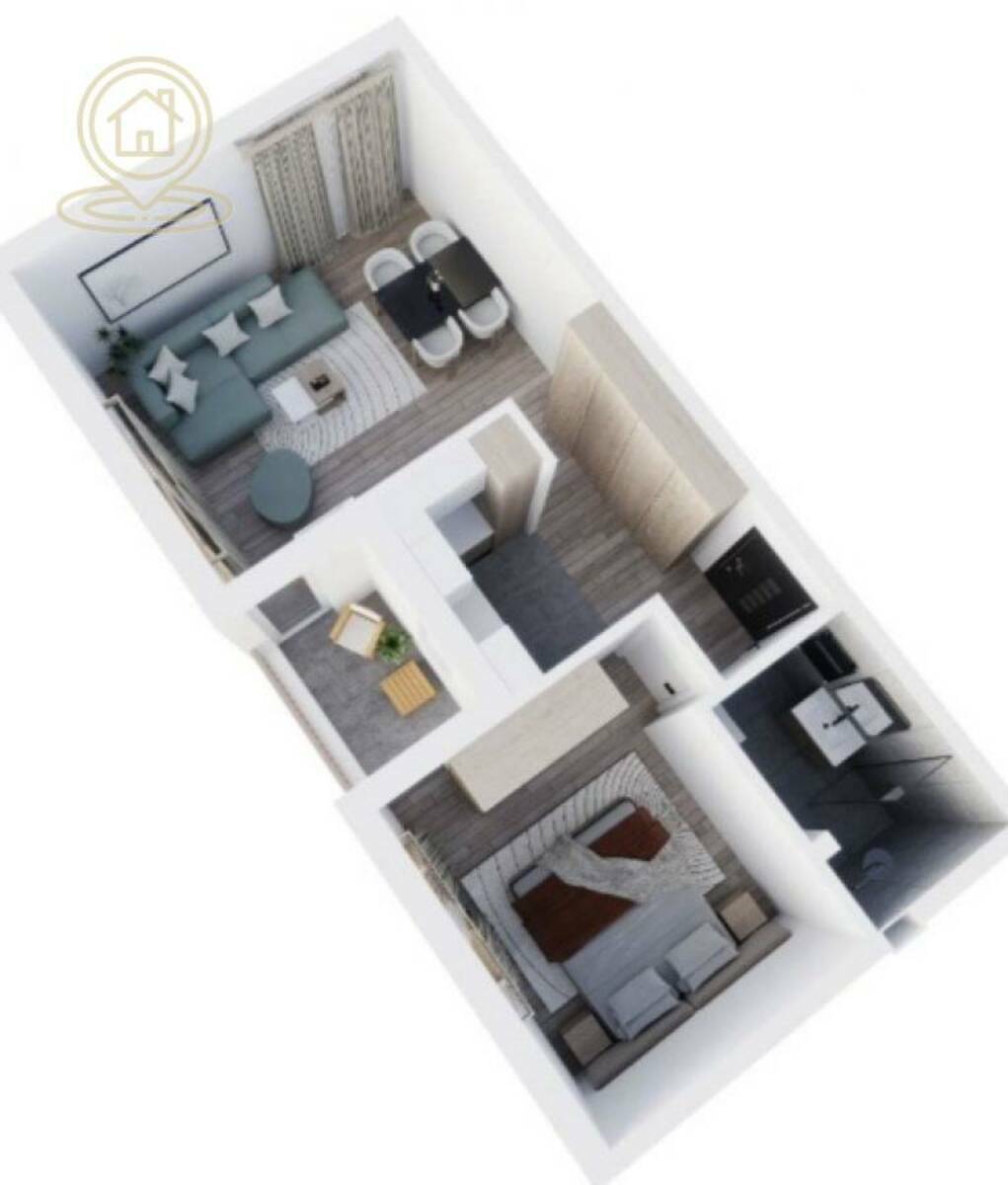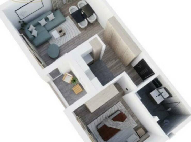 Dnevni boravak je komforan i povezan sa trpezarijskim delom, dok je spavaća soba izdvojena i pruža privatnost. Stan je idealan kako za život, tako i kao investicija za izdavanje.