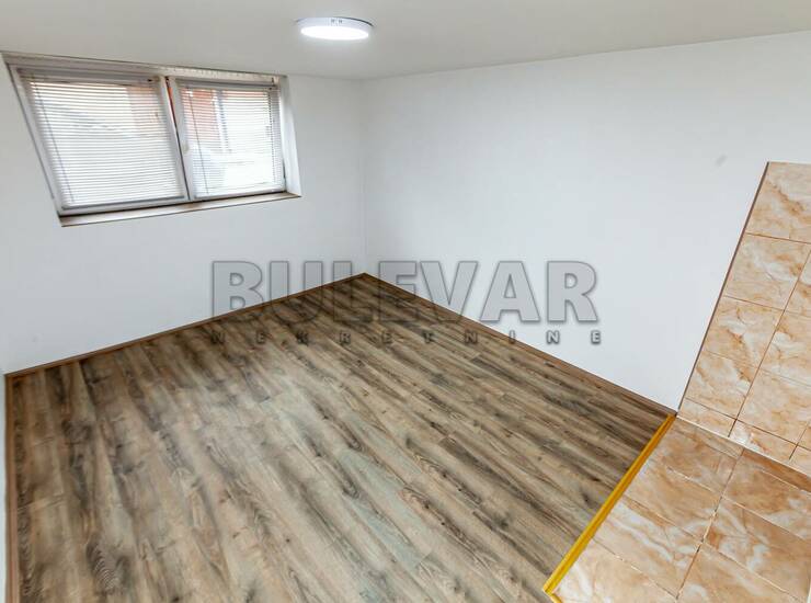 Nalazi se u starijoj zgradi u niskom prizemlju, na podovima je laminat, pvc stolarija, grejanje na struju.