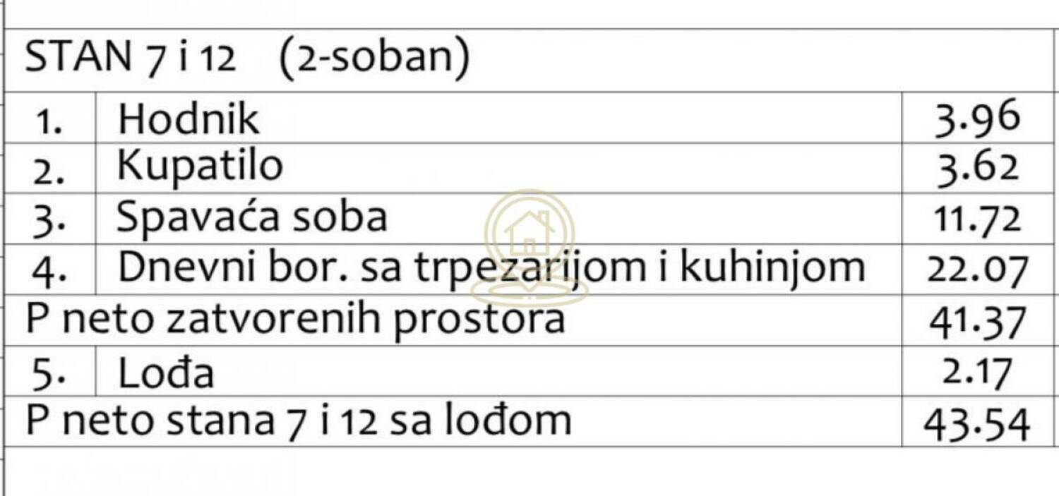 Kvadratura: 43, 54m²