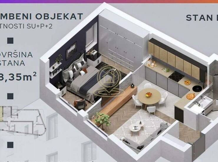 Na prodaju 1.5 stan u novogradnji na Paliluli, u blizini hotela ,,Tami". Nalazi se na visokom prizemlju stambene zgrade strukture SU+PR+2.