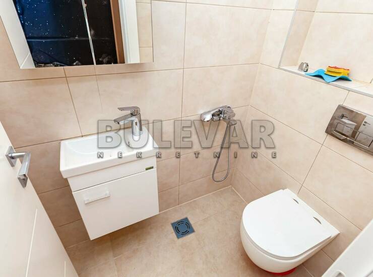 kupatilo, toalet i manja terasa. Grejanje u stanu je podno,električno sa ugrađenim kotlom mikoterm koji sa svega 4,5 KW maksimalno zagreva ceo stan, kao i inverter klima uredjaj. Stolarija je visokokvalitetna PVC. Na popdu je kvalitetan tarket parket. Stanu pripada i podrumska prostorija. Podzemno garažno mesto se može dodatno kupiti. Ovo je deo naše ponude za ostale informacije možete se obratiti našoj agenciji nekretnina.