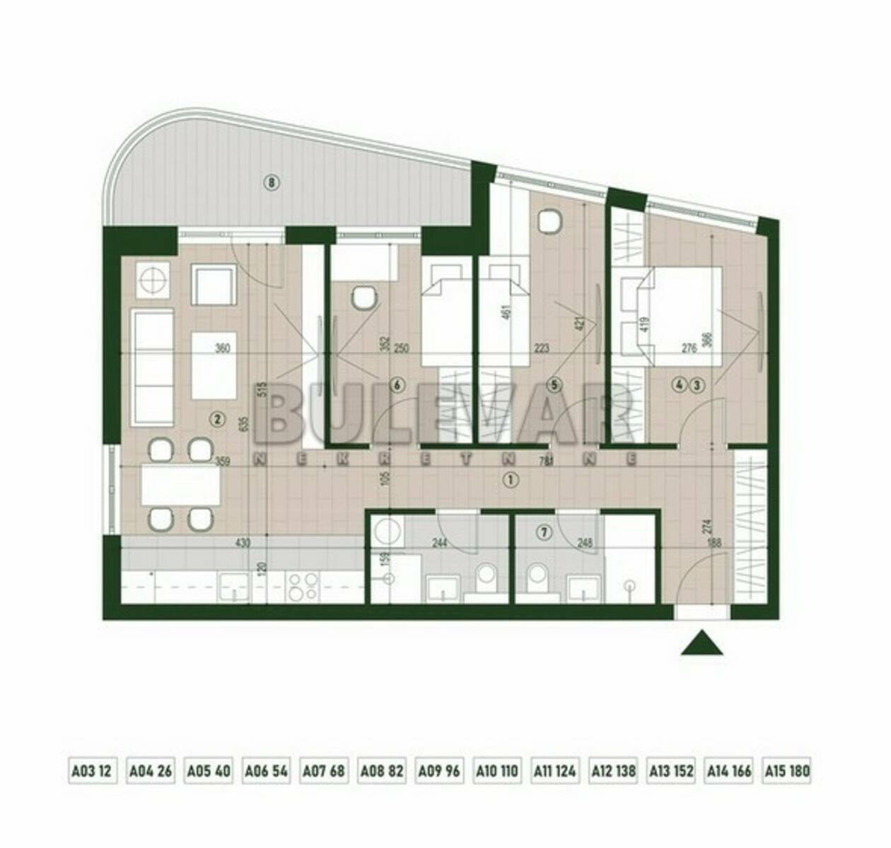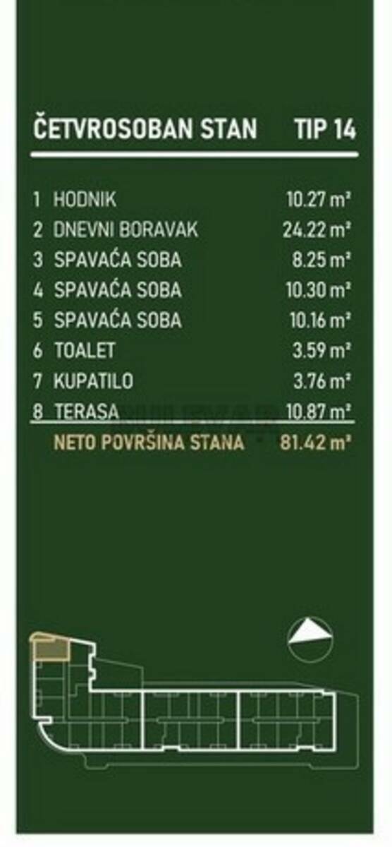 Lamela A - neto 81,42m² U ponudi 13 stanova od III do XV sprata. Cena: III sprat - 2.071,09 €/m² XV sprat - 2.430,88 €/m²