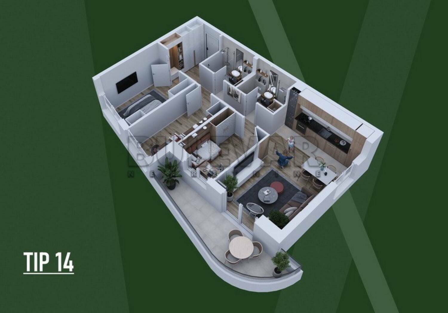 TIP 14 - Lamela A Idealan izbor za prvi dom, život u paru ili kao izuzetno isplativa investicija za izdavanje. Stan je projektovan po open-space konceptu, sa maksimalno iskorišćenim kvadratima i funkcionalnim rasporedom koji pruža osećaj većeg prostora.