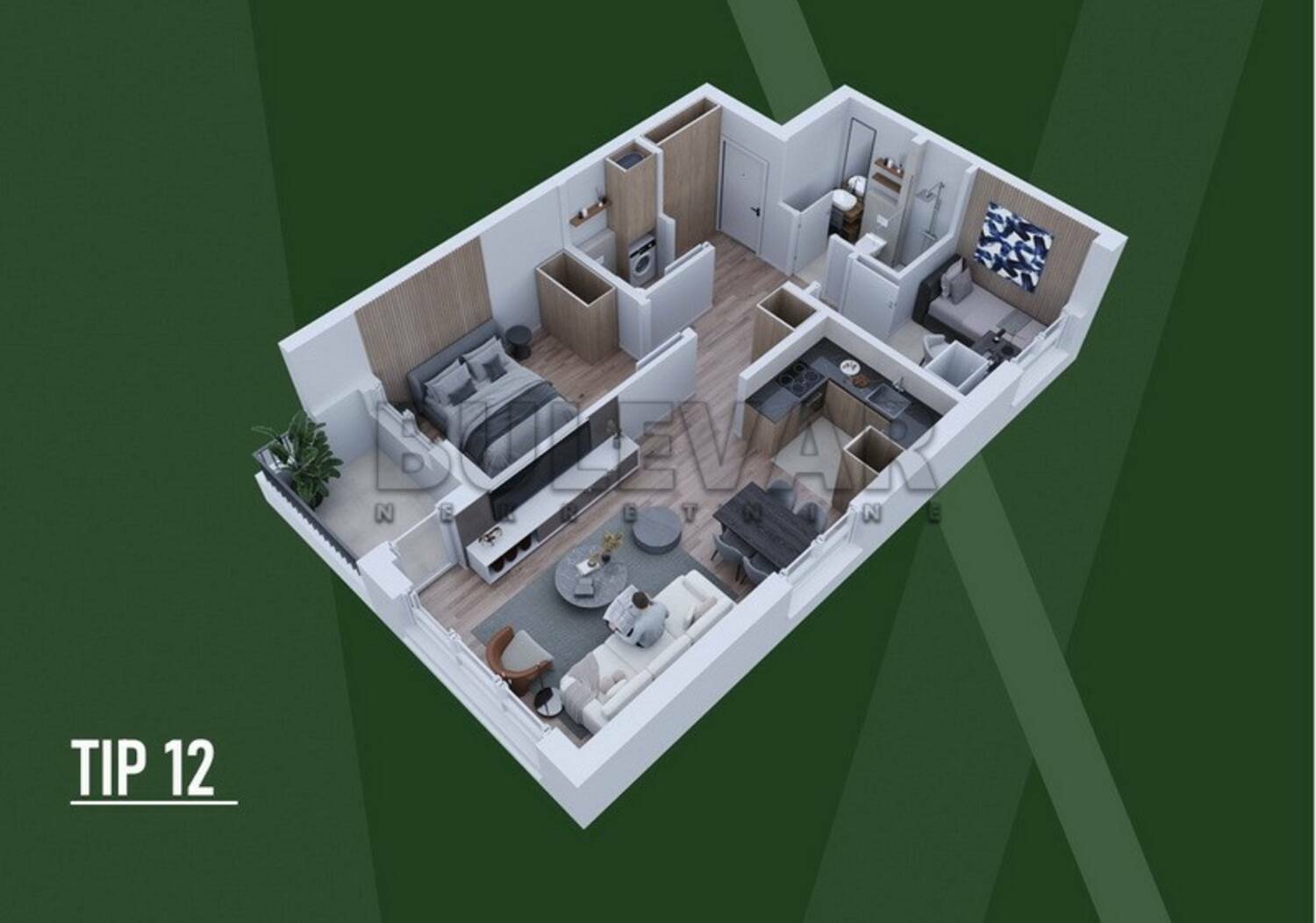 TIP 12 - Lamela C Idealan izbor za prvi dom, život u paru ili kao izuzetno isplativa investicija za izdavanje. Stan je projektovan po open-space konceptu, sa maksimalno iskorišćenim kvadratima i funkcionalnim rasporedom koji pruža osećaj većeg prostora.