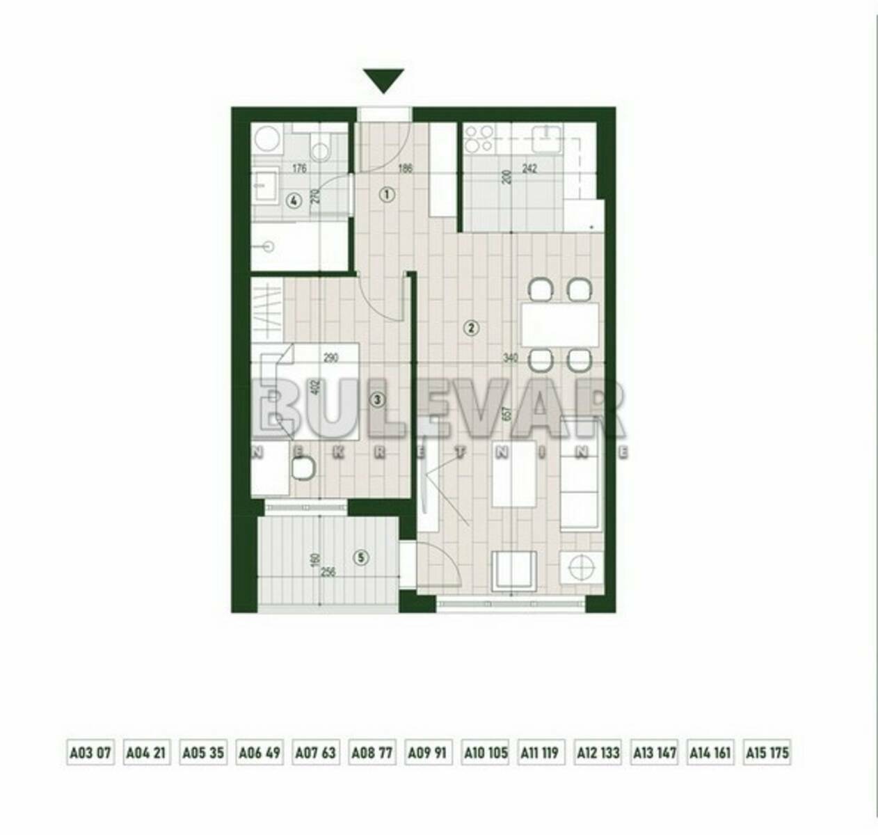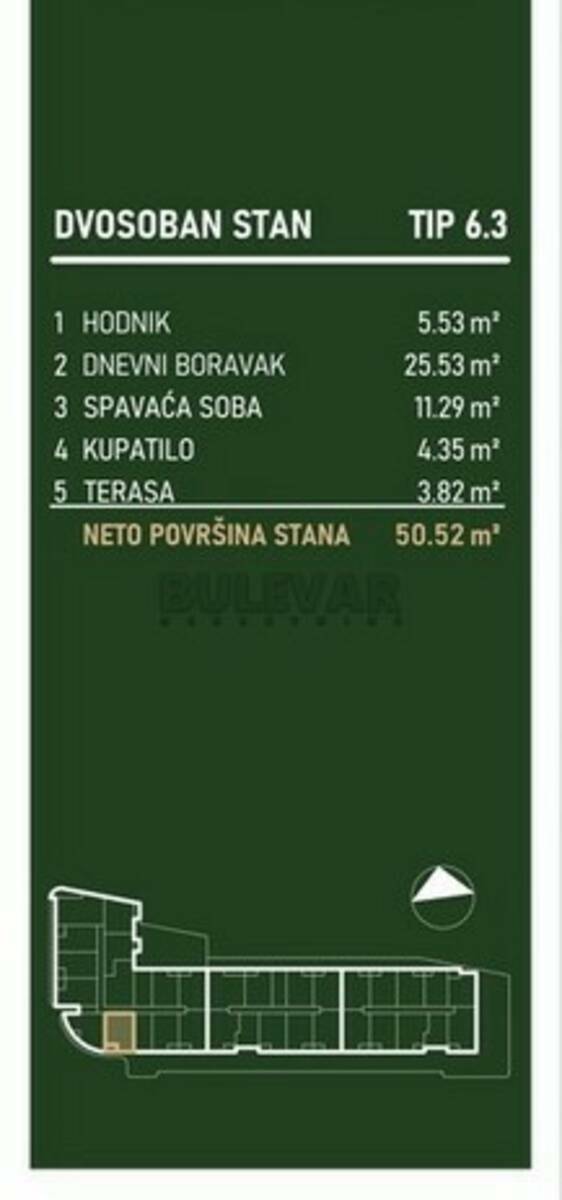 Lamela A - neto 50,52m² U ponudi 13 stanova od III do XV sprata. Cena: III sprat - 2.157,71 €/m² XV sprat - 2.494,04 €/m²