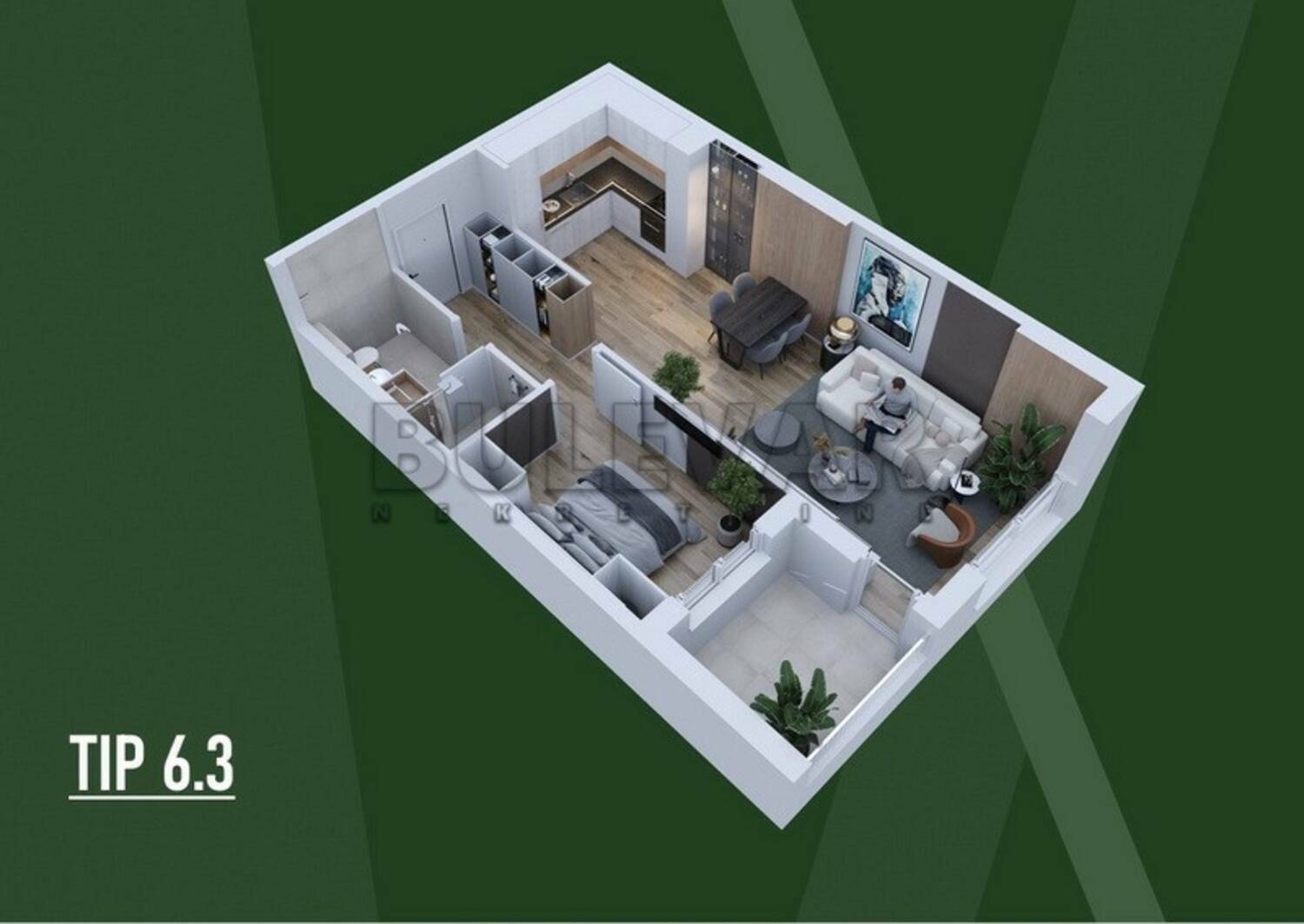 TIP 6.3- Lamela A Idealan izbor za prvi dom, život u paru ili kao izuzetno isplativa investicija za izdavanje. Stan je projektovan po open-space konceptu, sa maksimalno iskorišćenim kvadratima i funkcionalnim rasporedom koji pruža osećaj većeg prostora.
