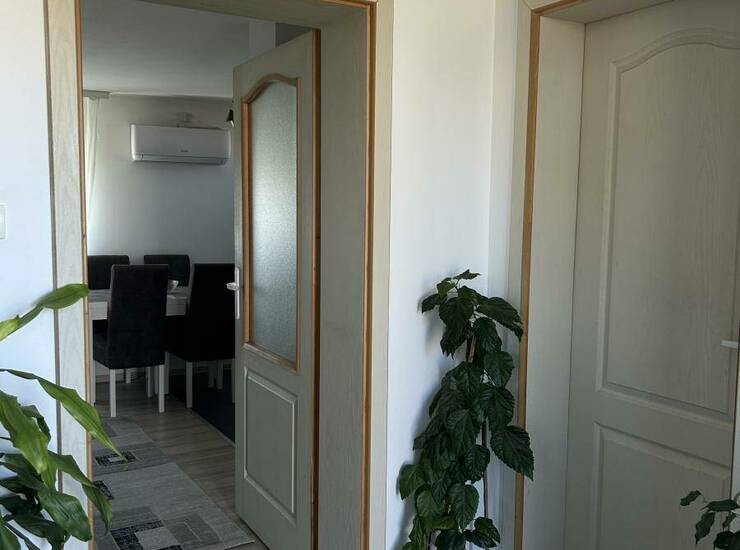 Iz jednog ulaza se ide u hodnik, koji vodi u kupatilo, dve spavaće i dnevnu sobu sa kuhinjom. Drugi ulaz vodi u prostoriju sa ugaonom i dodatnom kuhinjom, a treći u potkrovlje.