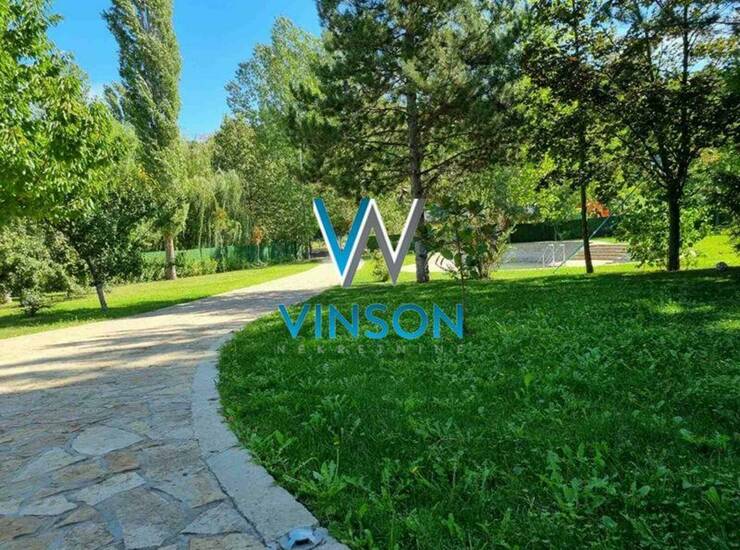Sremski Karlovci - Zanoš. Izdvajamo iz ponude ekskluzivnu, novu porodičnu kuću visokog kvaliteta gradnje sa pomoćnim stambenim objektom za odmor. Nalazi se na lepoj i mirnoj lokaciji za stanovanje. Izolovana od gradske gužve i buke. Na placu ukupne površine 5.888 m2, izgrađena je prizemna kuća 126m2 i pomoćni objekat 100m2. Kuća je po strukturi trosobna i čine je dnevni boravak sa trpezarijom, kuhinja sa ostavom, dve spavaće sobe i kupatilo sa tuš kabinom. Pomoćni stambeni objekat je spratnosti suteren i prizemlje (po projektu je moguće na spratu izgraditi dva stana). Trenutno se u prizemlju nalaze jedna soba, zatvoren bazen sa saunom i odvojen toalet, dok je na spratu trenutno velika krovna terasa. Prostrano i ozelenjeno dvorište, oivičeno voćnjakom i vinogradom. Poseduje manje veštačko jezero, letnjikovac sa zidanim roštiljem i otvoren bazen. Ugrađeni alarm, video nadzor na objektima i imanju. Ekološka septička jama, dva bunara, zalivni sistem. Useljiva po dogovoru. (Vinson nekretnine, Novi Sad, Reg. br. posrednika: 1085)