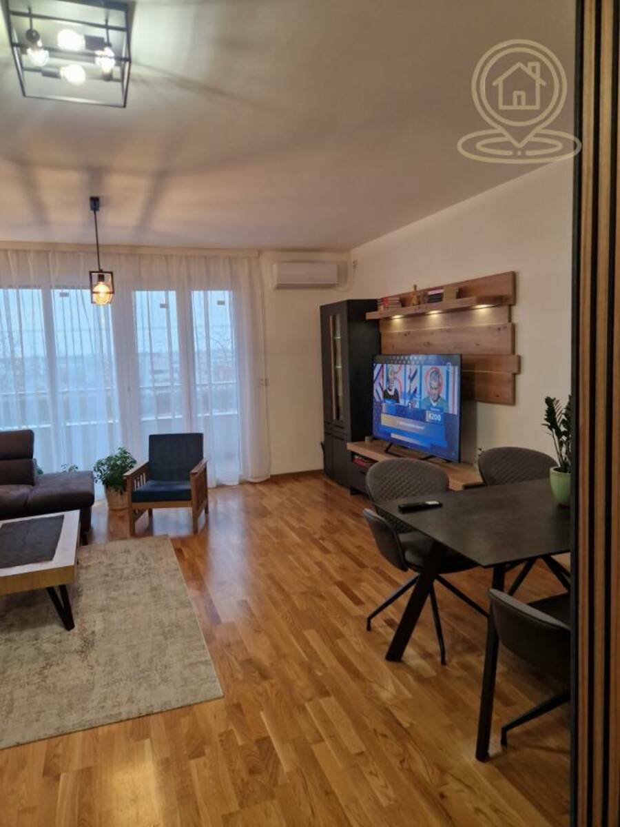 Stan je nov, savremeno projektovan i dvostrano orijentisan, sa lepim pogledom i dosta prirodnog svetla. Funkcionalan raspored čine prostrana dnevna soba sa trpezarijom i kuhinjom, spavaća soba, dve dečije sobe, dva kupatila, kao i dve terase od kojih jedna poseduje ostavu.