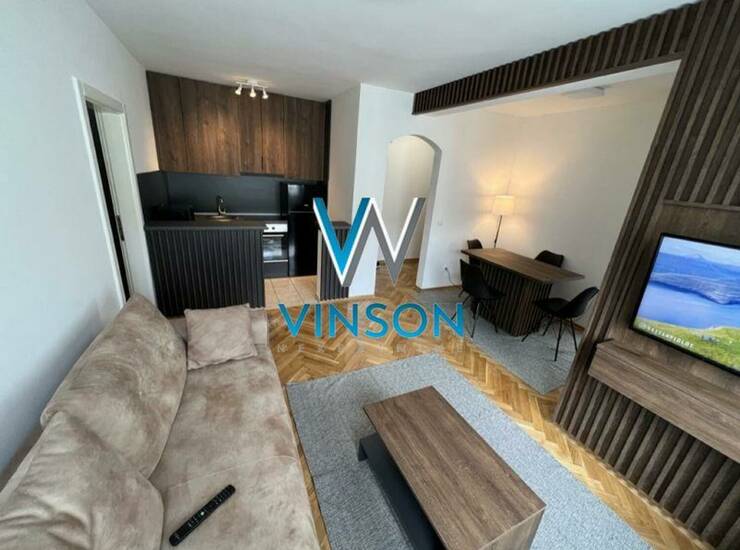 Novi Sad, Bulevar oslobođenja. Uknjižen, po strukturi jednoiposoban stan u neposrednoj blizini strogog centra grada, Futoške pijace, više trgovinskih radnji i ugostiteljskih objekata, više obrazovnih ustanova.. Ovaj stambeni prostor čine dnevni boravak sa kuhinjom i trpezarijom, spavaća soba, kupatilo i terasa. Pozicioniran na V spratu stambene zgrade sa liftom. Useljiv po dogovoru. (Vinson nekretnine, Novi Sad, Reg. br. posrednika: 1085)