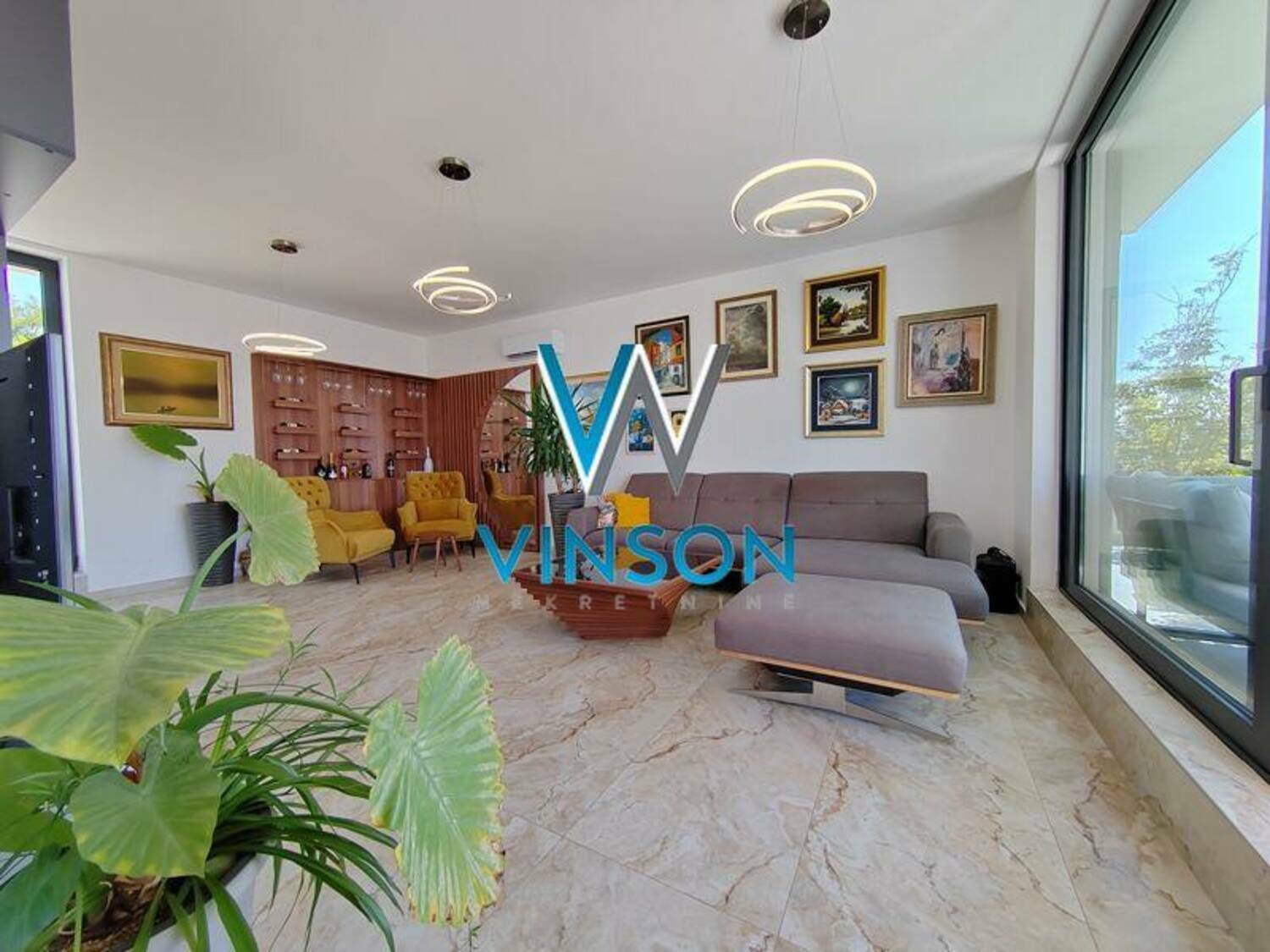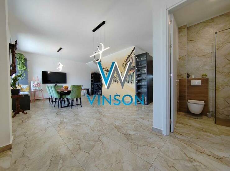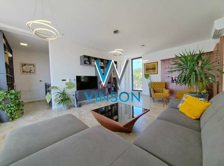 Sremska Kamenica. Izdvajamo iz ponude luksuznu nekretninu jedinstvenih karakteristika i visokog kvaliteta opreme i gradnje. Petosoban tripleks stan na obodu Fruške gore sa prelepim pogledom na Dunav i grad. Ovaj stambeni prostor građen po principu smarthome sistema poseduje tri redovne etaže, veliku terasu veličine 75m2 koja okružuje ceo stan i prednje dvorište od oko 45m2 koje može poslužiti kao parking za dva vozila. Prizemlje predstavlja lep i svetao otvoren prostor dnevnog boravka, uvučena kuhinja sa prirodnom ventilacijom i kupatilo sa tuš kabinom. Prvi sprat je rezervisan za spavaću zonu i njega čine tri spavaće sobe i drugo kupatilo. Drugi sprat predstavlja prelepu galeriju sa trećim kupatilom i izlazom na dve strane na veliku terasu sa pogledom na grad i Dunav. Podno grejanje na gas, alarm, video nadzor, elektro podizači roletni... Uknjižen. Stan se prodaje sa svim nameštajem i tehnikom prikazanim na fotografijama. Useljiv odmah. (Vinson nekretnine, Novi Sad, Reg. br. posrednika: 1085)