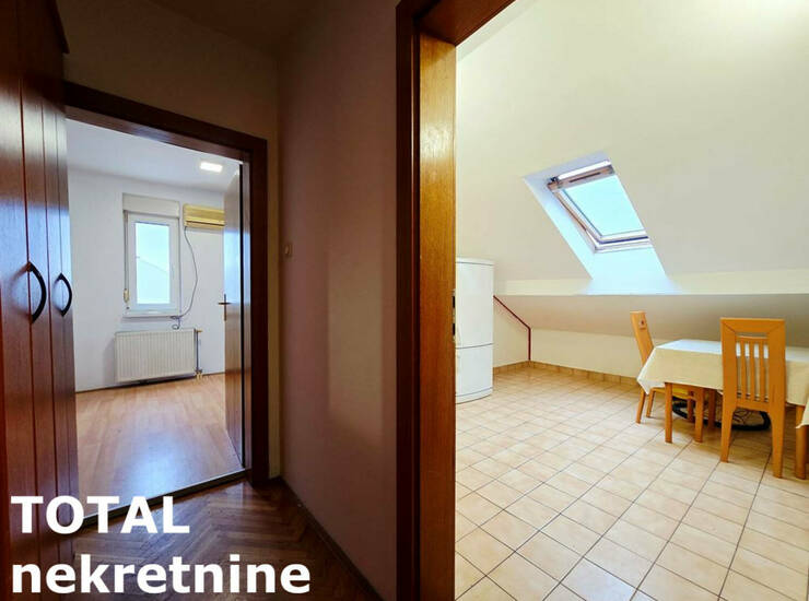 CENA 105.000e sa uračunatom agencijskom provizijom. EKSKLUZIVNA PRODAJA, uknjižen dvosoban stan u Filipa Višnjića 17a. Stan se sastoji iz odvojene kuhinje sa trpezarijom, dnevne sobe sa redovnim prozorom, odvojene spavaće sobe sa jednim redovnim i jednim krovnim prozorom, kupatila i hodnika. Blage kosine, koje se vrlo lako mogu dodatno iskoristiti. Stan je uknjižen 1/1 i može se prometovati putem stambenog kredita, kao i kredita za mlade. Kontakt 0638901... Prikaži broj Nataša