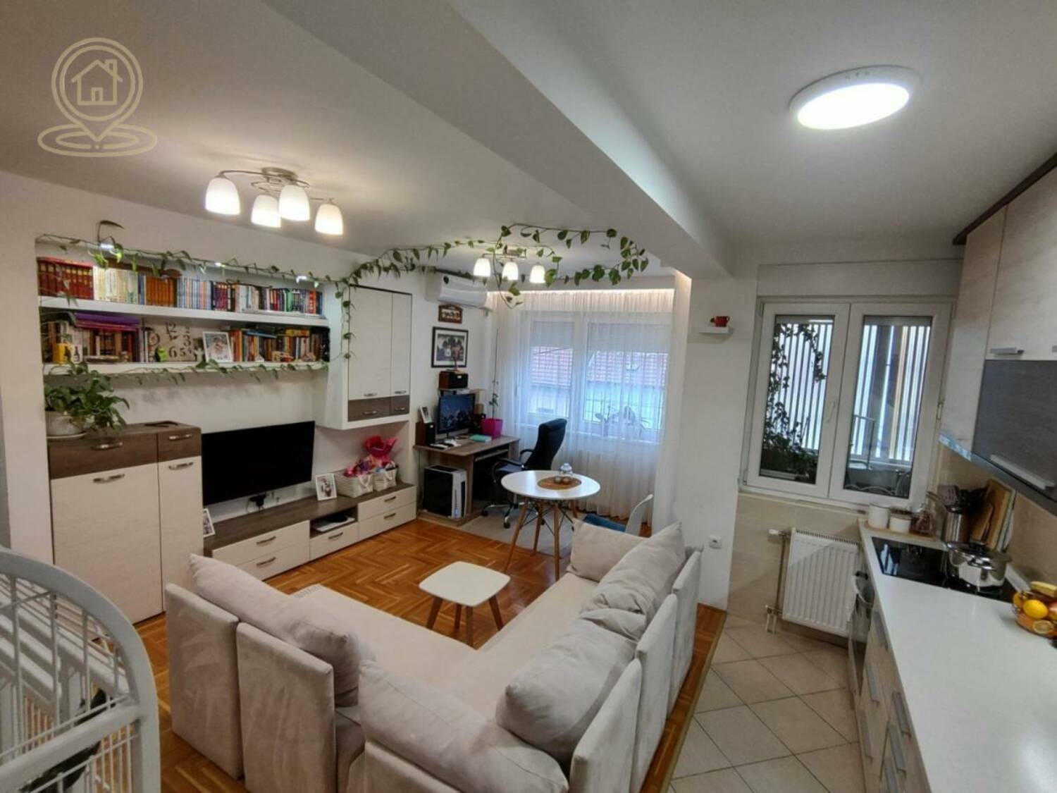 Stan je kompletno opremljen, uredno održavan i prodaje se sa nameštajem i tehnikom koja je još u garanciji. Kuhinja je rađena po meri, od kvalitetnih materijala, sa vrhunskim okovima i dosta prostora za odlaganje.