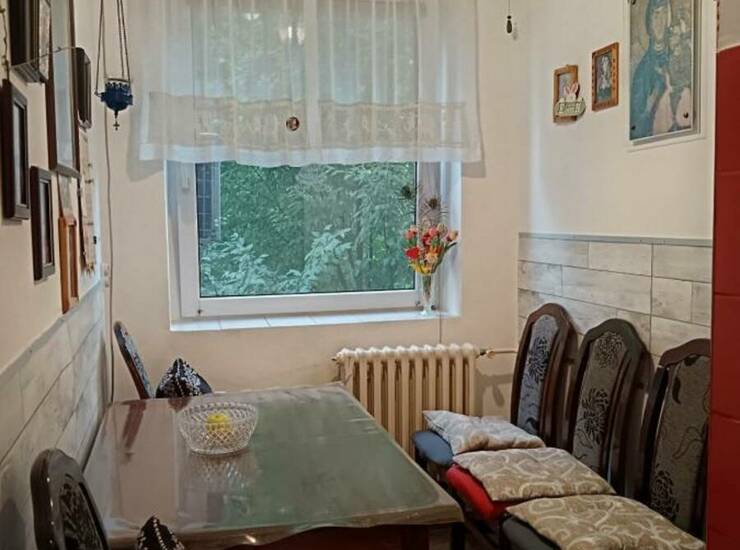 Stan je funkcionalnog rasporeda i sastoji se od predsoblja, kupatila, kuhinje, trpezarije, špajza, manje i veće sobe, kao i zastakljene terase. Iz stana se pruža prelep pogled na Almašku crkvu, a okružen je zelenilom što ga čini izuzetno prijatnim za život.