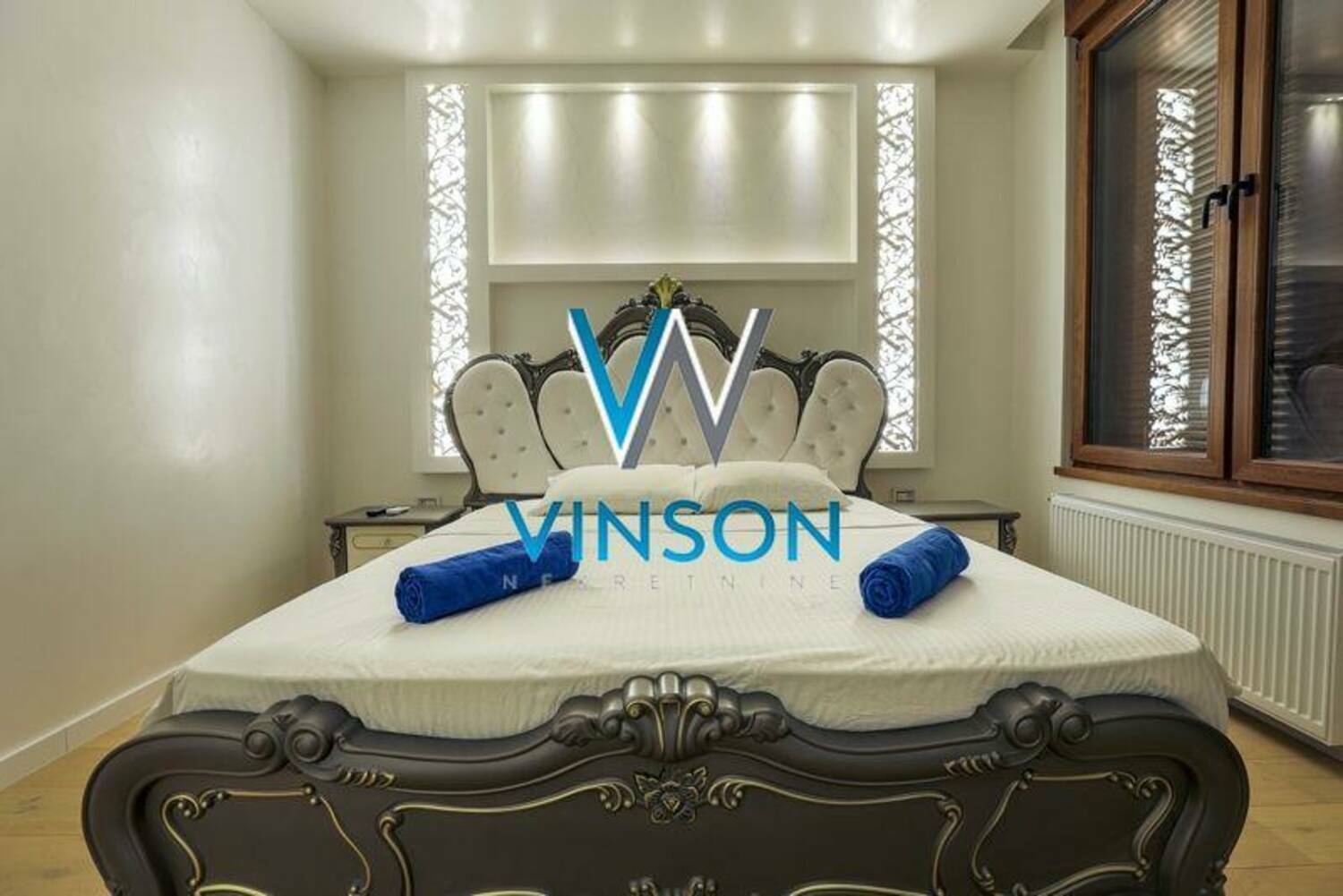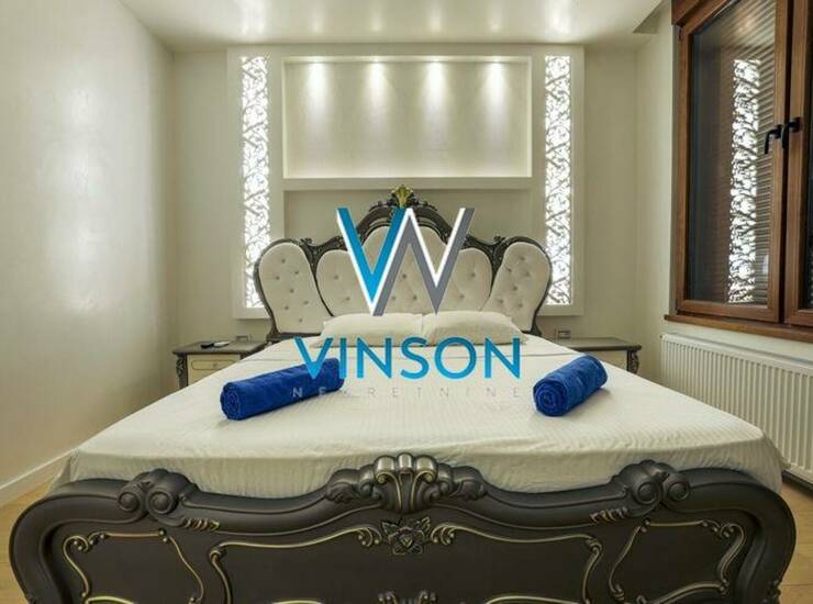 Novi Sad, Salajka. Predstavljamo luksuzan, po strukturi četvorosoban stan namešten veoma vrednim stilskim nameštajem visokog kvaliteta. Ovaj stambeni prostor pored svog ekskluzivnog uređenja pozicioniran je na jednoj od najatraktivnijih lokacija za stanovanje. U neposrednoj blizini centra grada, osnovne škole, glavne autobuske i železničke stanice. Ovaj stan čini komforan i svetao dnevni boravak sa izlazom na terasu, trpezarijski deo sa kuhinjom, tri spavaće sobe od kojih svaka ima izlaz na terasu i svoje kupatilo. Bazen sa masažerima, grejačima i zidnim vodopadom. Panoramska sauna sa slanom sobom. Stan se porodaje namešten (nameštaj i tehnika prikazani na fotografijama). U stanu su postavljeni materijali visokog kvaliteta (stepenište mermer, Italijanska keramika, zid i plafon tehnika, na podovima tarket, video nadzor, led rasveta, roletne sa elektronskim podizačima...). Dodatni tavanski prostor od oko 60m2. Pripadajuća dupla garaža od 40m2 sa rolo vratima. Useljiv po dogovoru. Uknjižen. (Vinson nekretnine, Novi Sad, Reg. br. posrednika: 1085)
