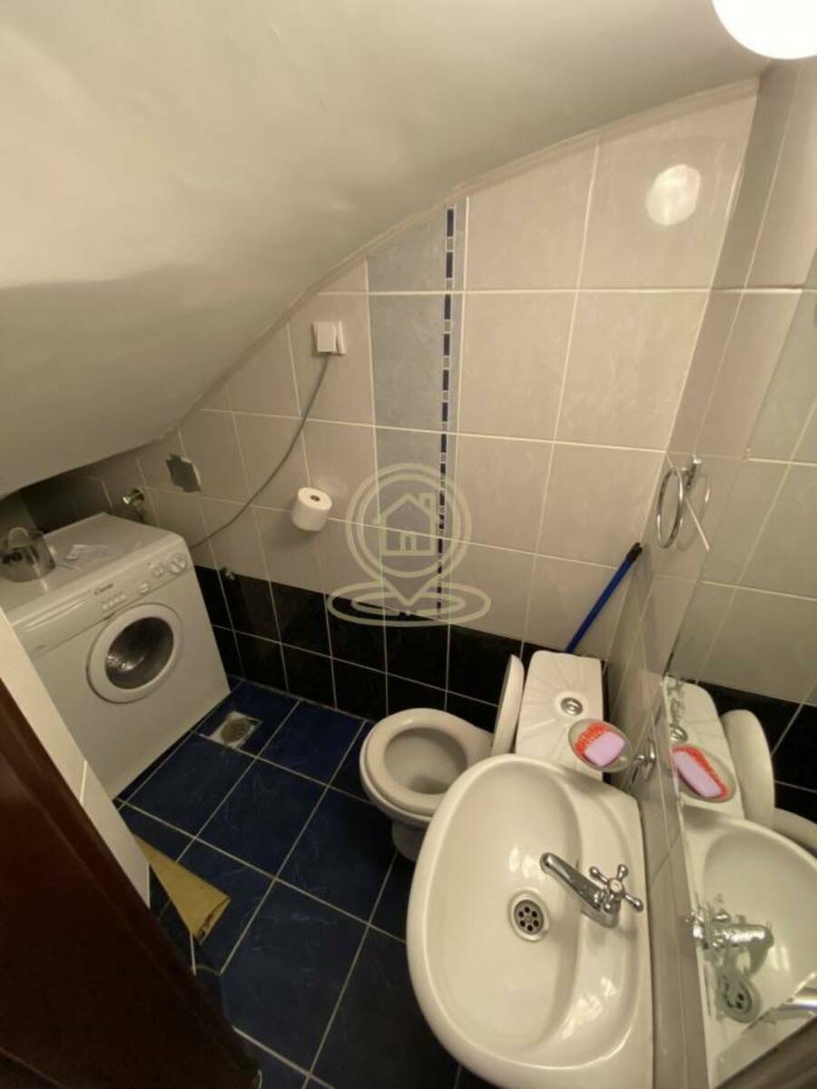 Donja etaža sastoji se od prostranog dnevnog boravka sa kuhinjom i trpezarijom, dok se na gornjem nivou nalaze dve prostrane sobe i terasa koja pruža dodatni komfor i privatnost.