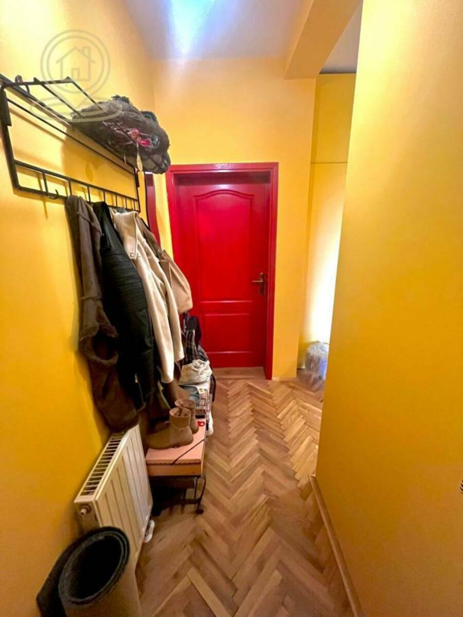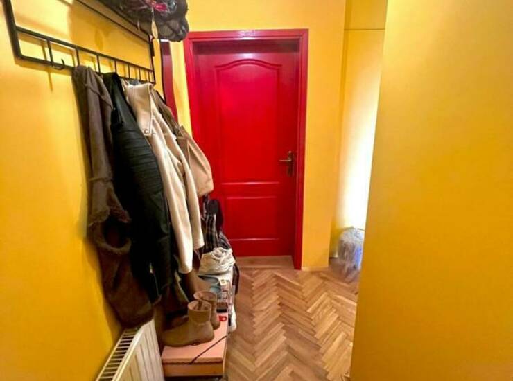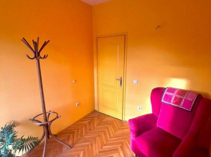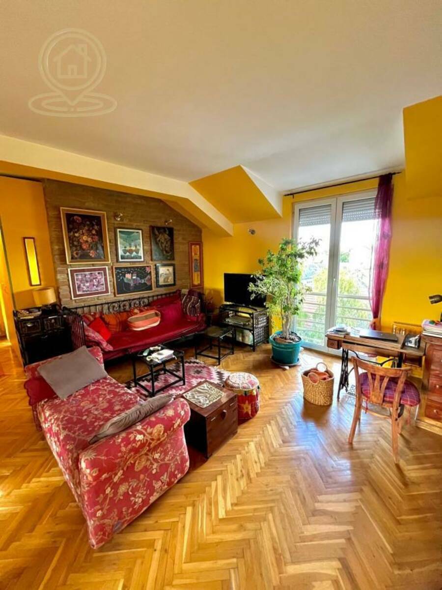 Prostor je pažljivo osmišljen tako da maksimalno iskoristi prirodnu svetlost. Veliki prozori i visoki plafoni stvaraju osećaj prostranosti i topline, dajući stanu gotovo salonski karakter.